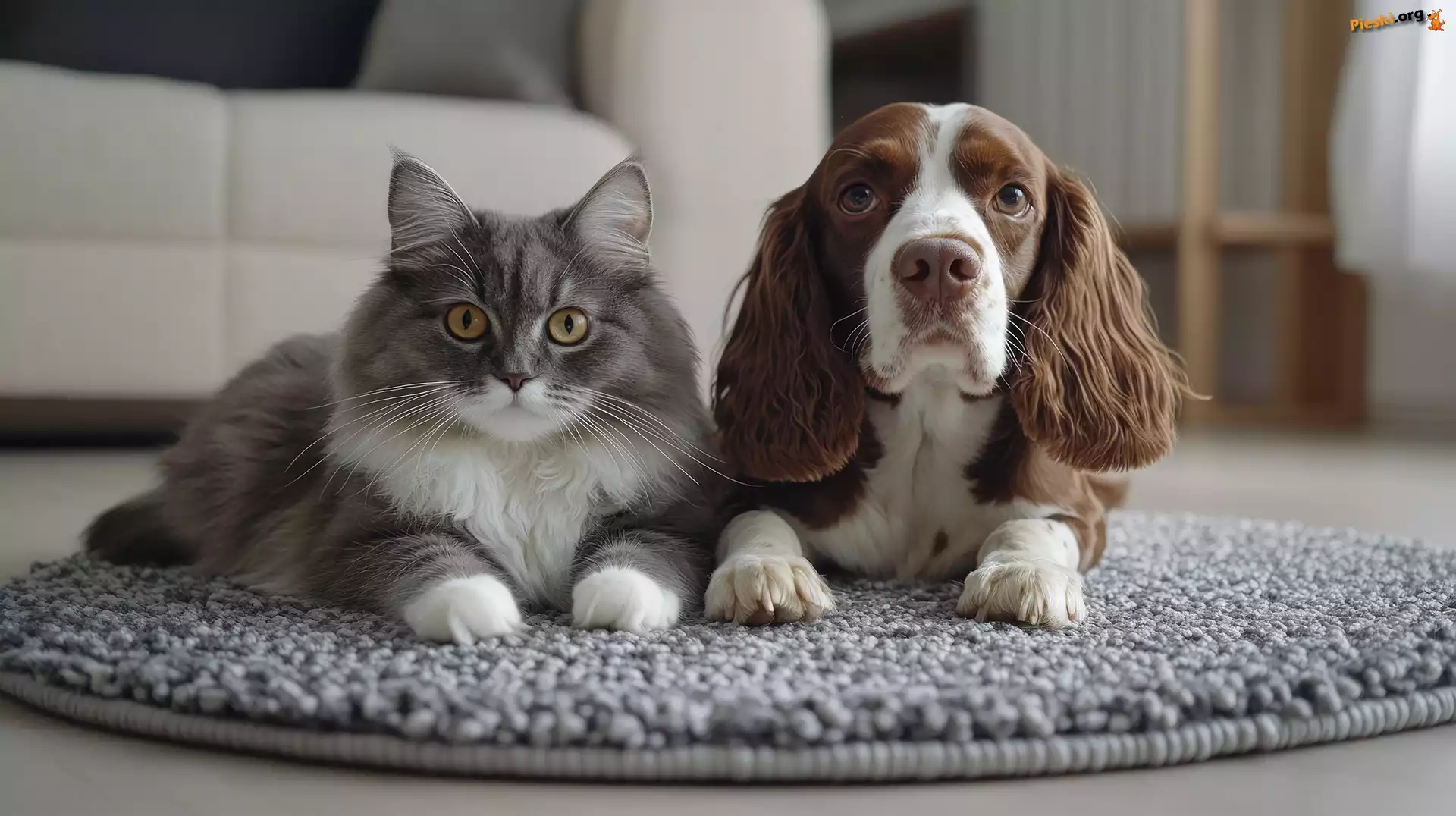 Grafika AI, Dywanik, Kot, Pies, Pieski