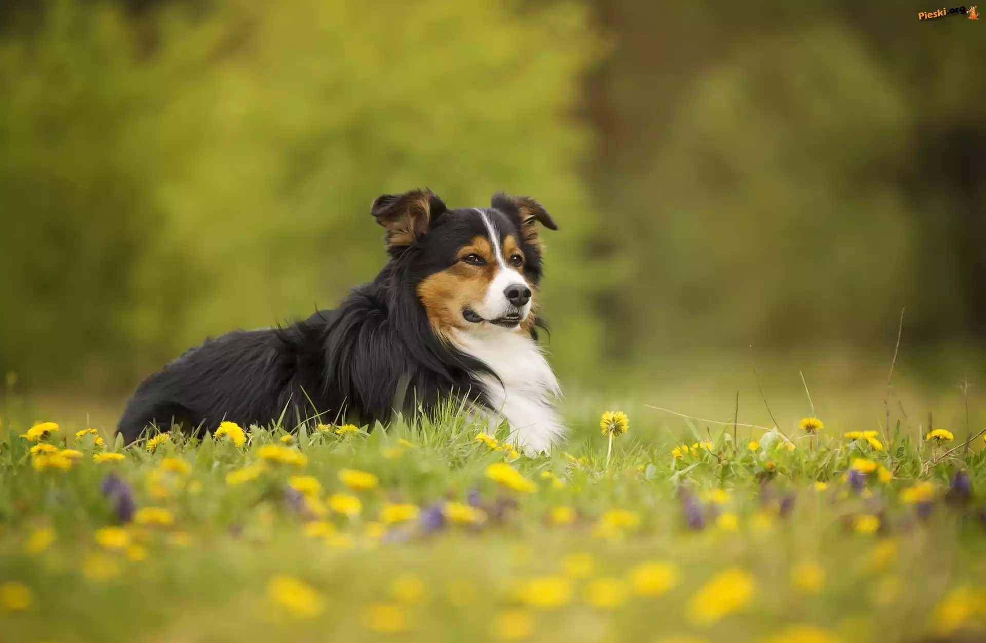 Pies, Łąka, Kwiaty