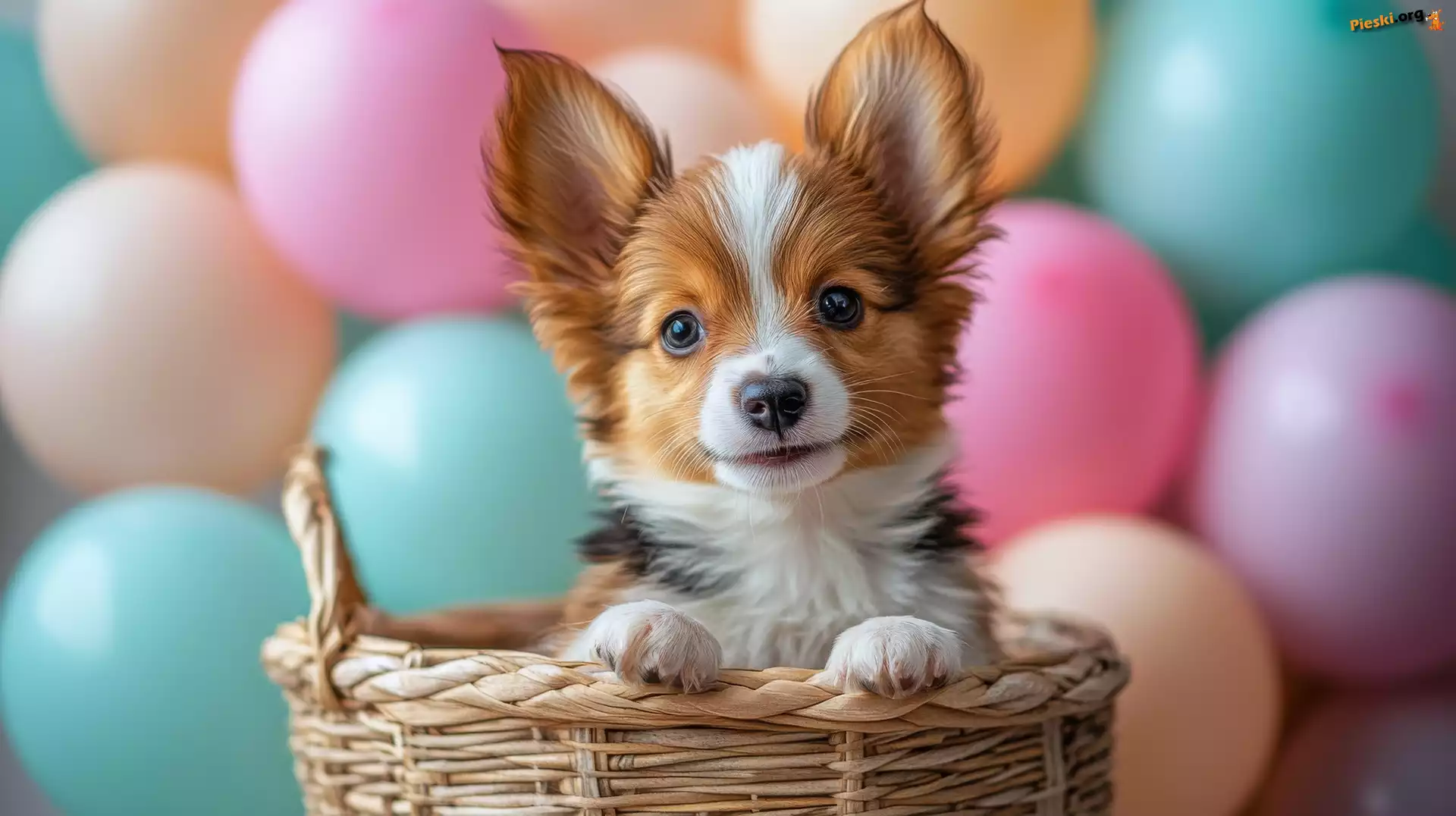 Koszyk, Balony, Pies, Kolorowe, Szczeniak, Pieski