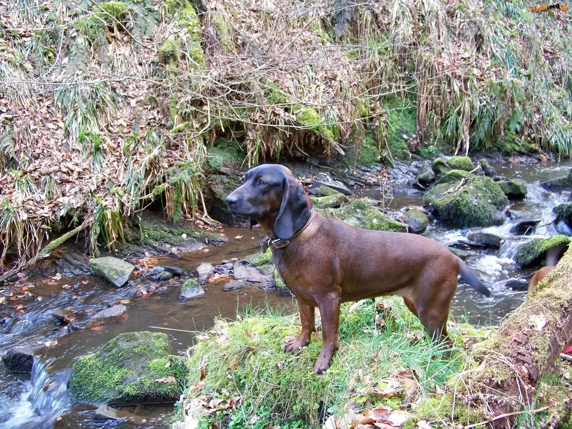 Posokowiec bawarski, rzeka obroża, Posokowiec bawarski, jasna, śnieg Posokowiec bawarski, wodospad leżący, Posokowiec bawarski, jęzor