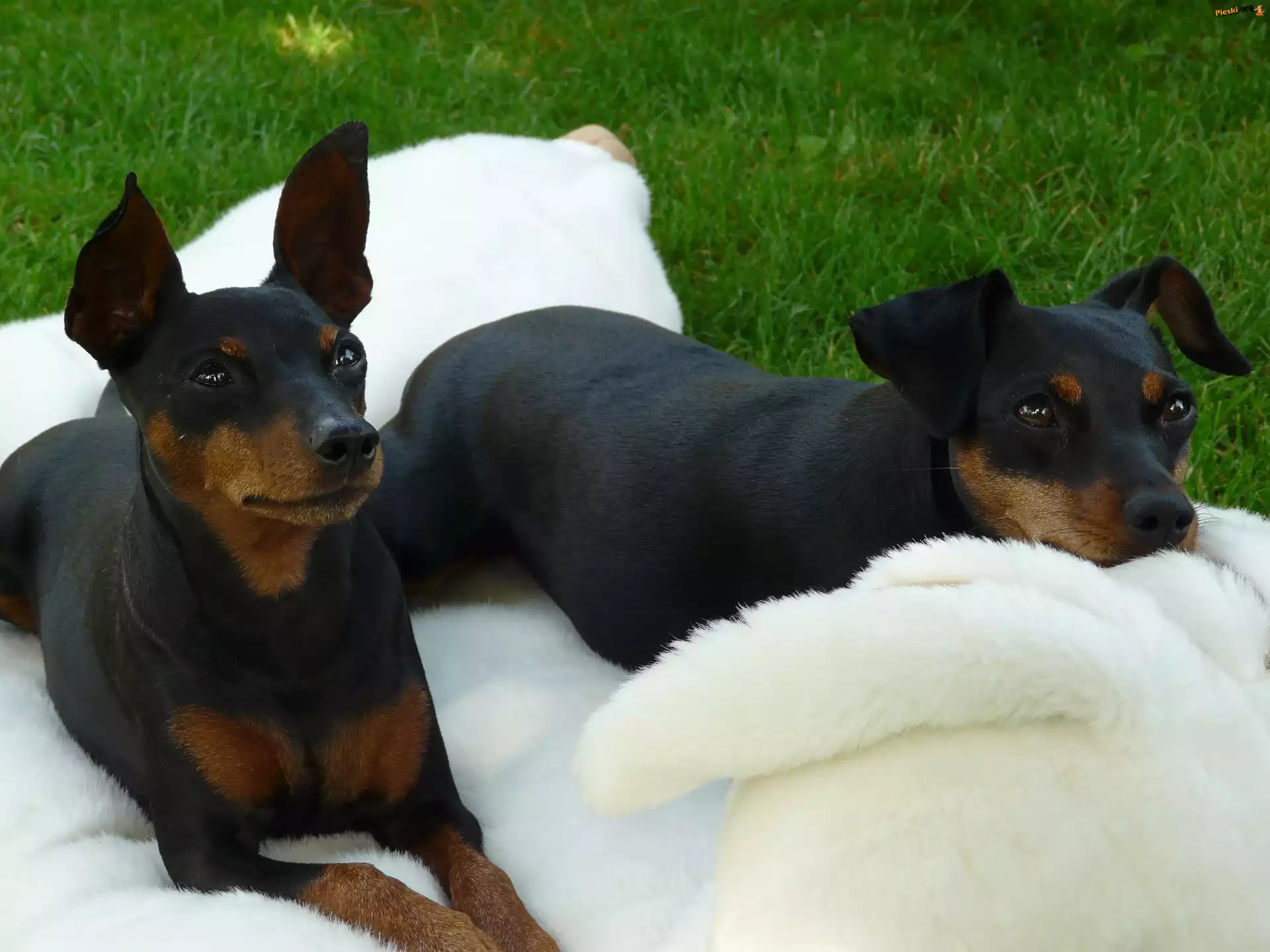 biały, dwa, Pinczery miniaturowe, koc