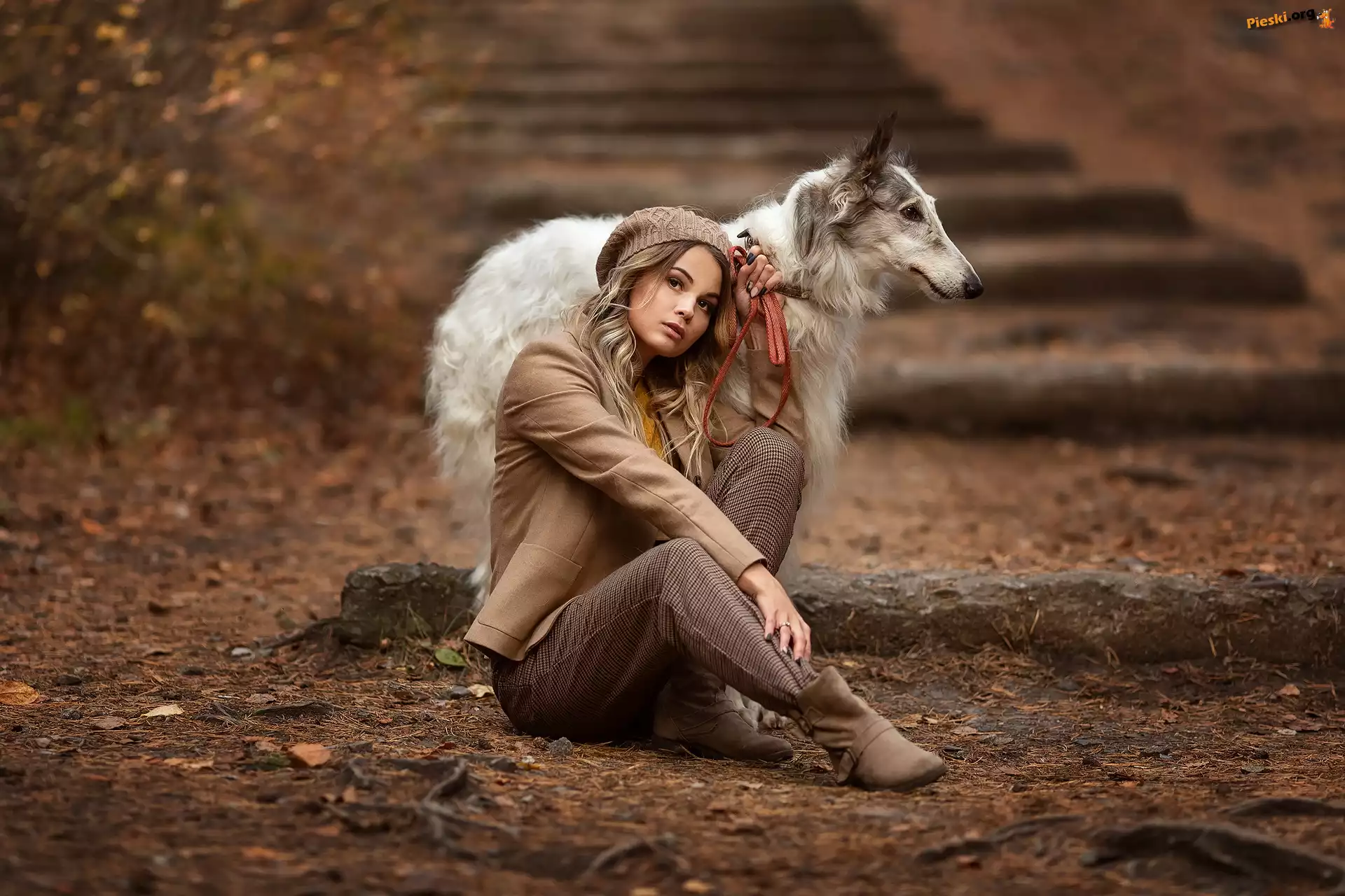 Borzoj, Kobieta, Pies, Chart rosyjski Pies, Chart rosyjski, Borzoj Rosyjski, Pies, Chart, Borzoj Charty, Rosyjskie Psy, Blondynka, Kobieta, Dwa, Charty rosyjskie borzoj