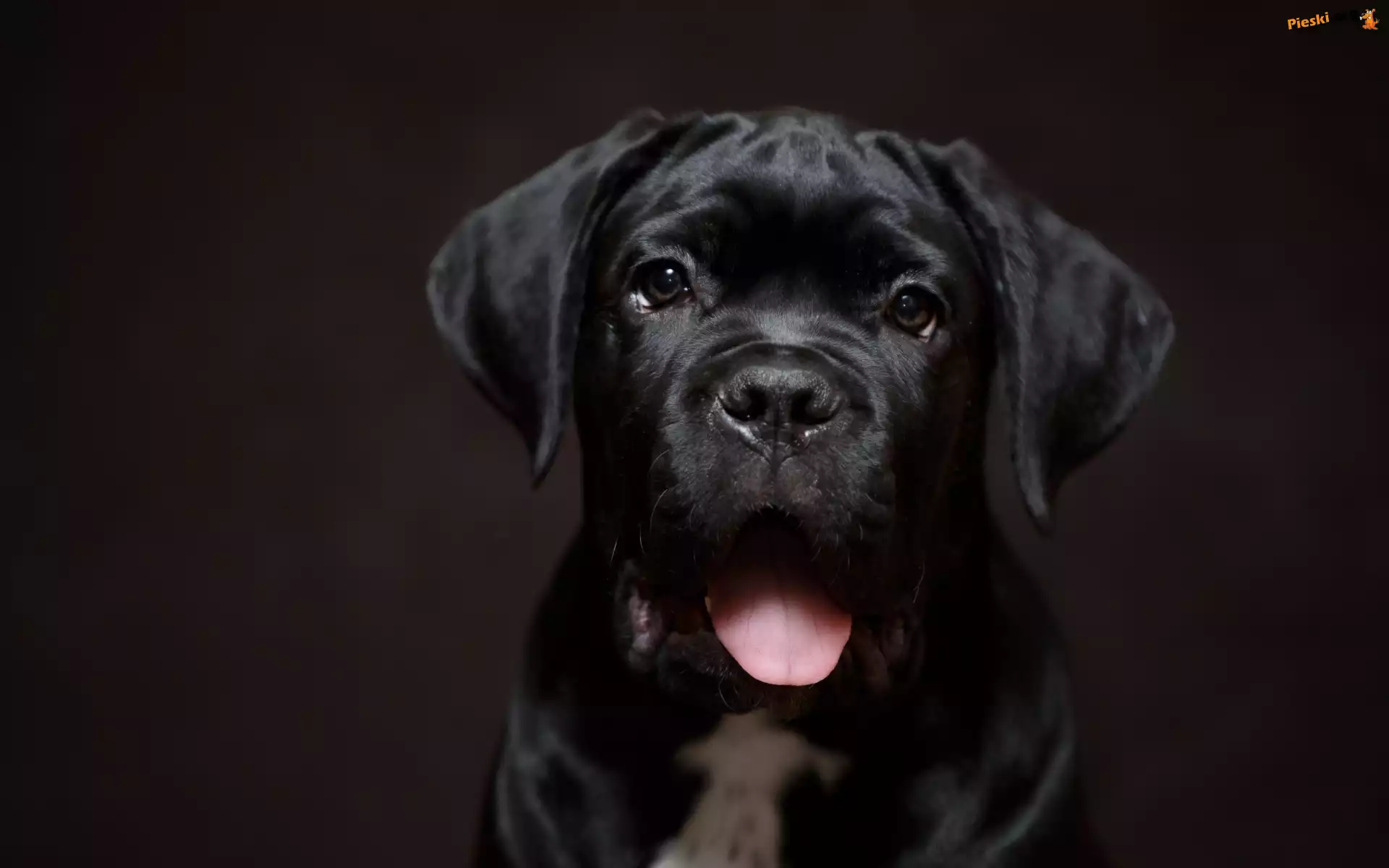 Cane Corso, Pies, Czarny, Szczeniak, Język, Pieski