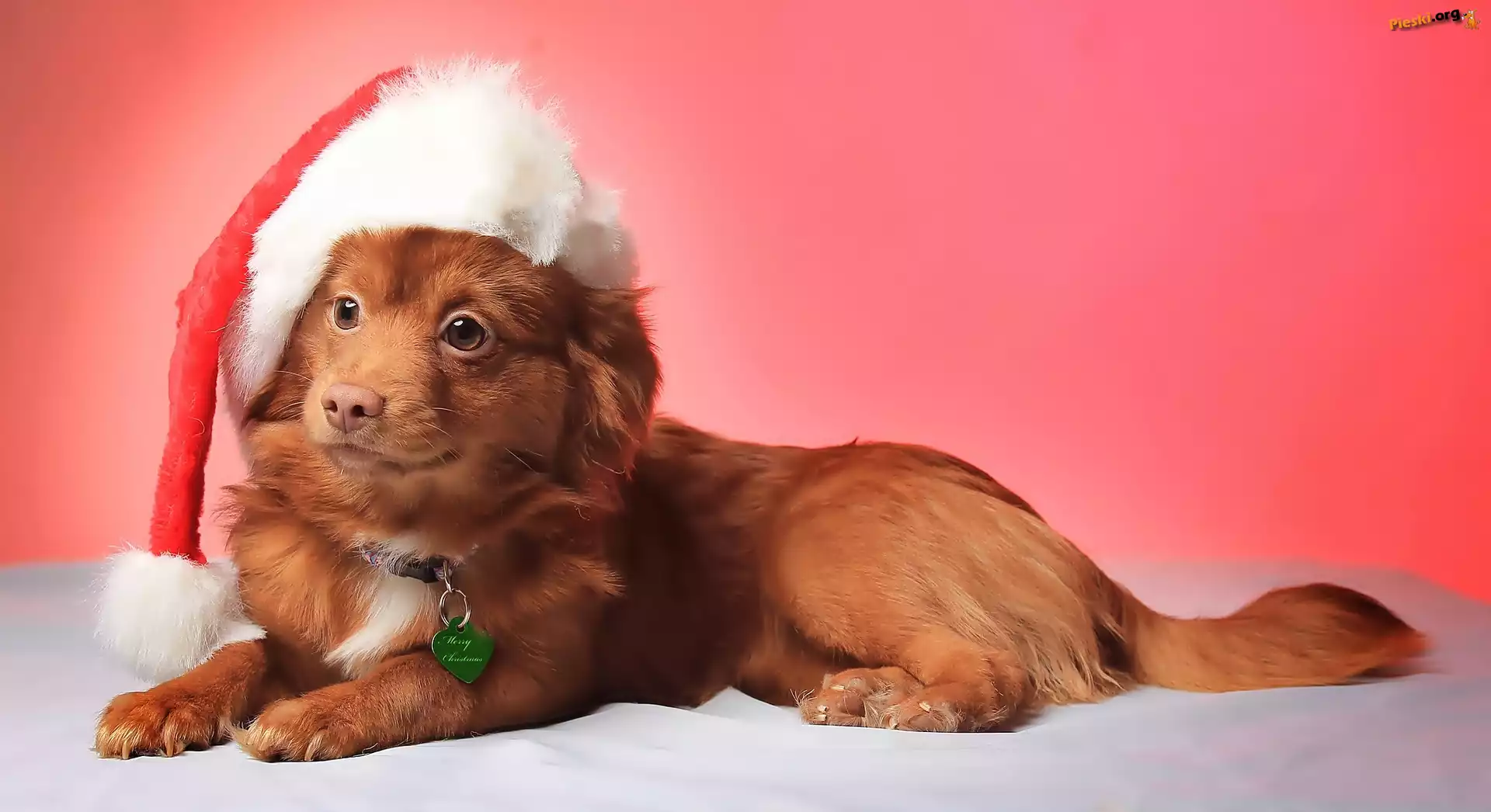 Czapka, Uśmiechnięty, Piesek, Mikołaja, Pieski