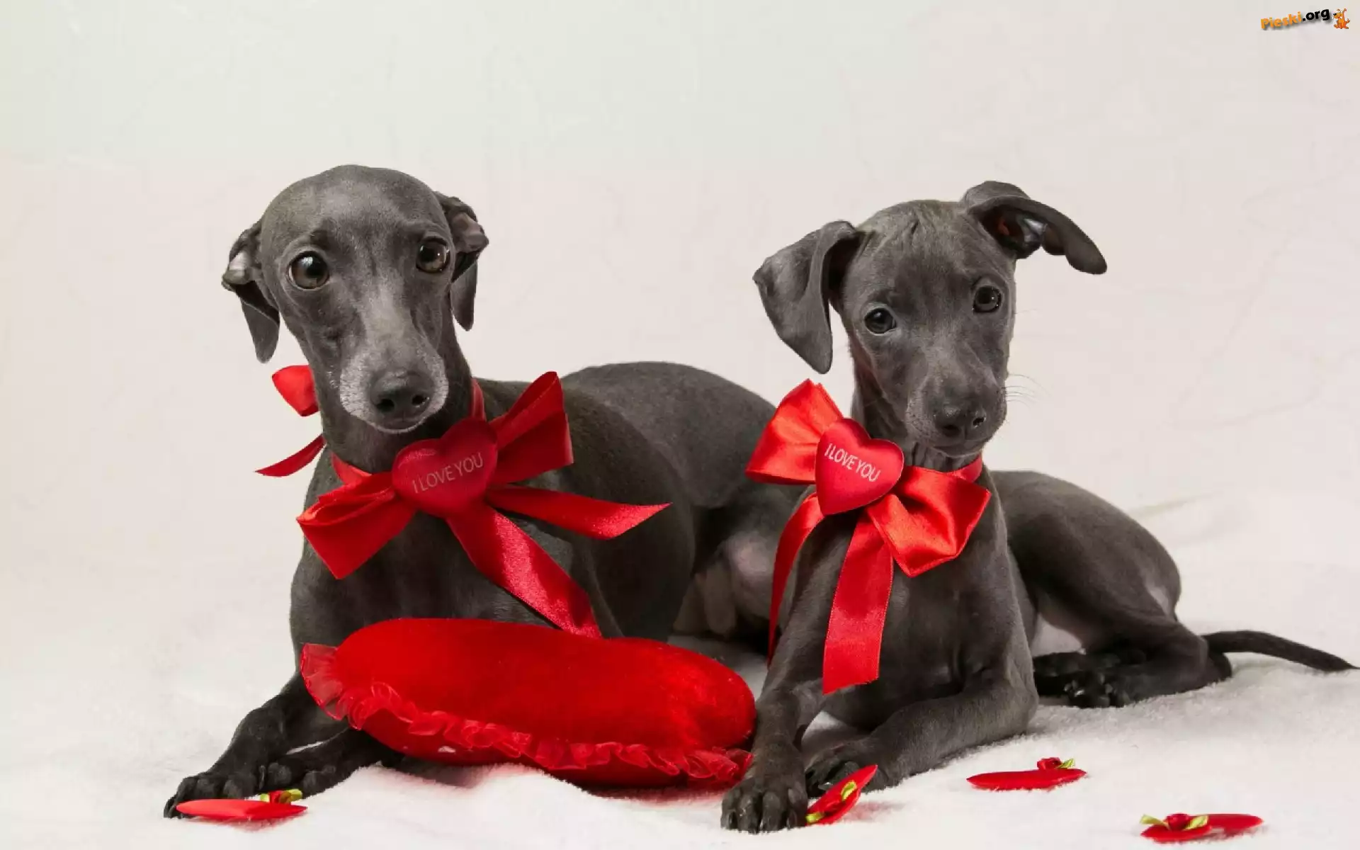 Czerwona, Charcik, Włoski, Kokardka, Pieski