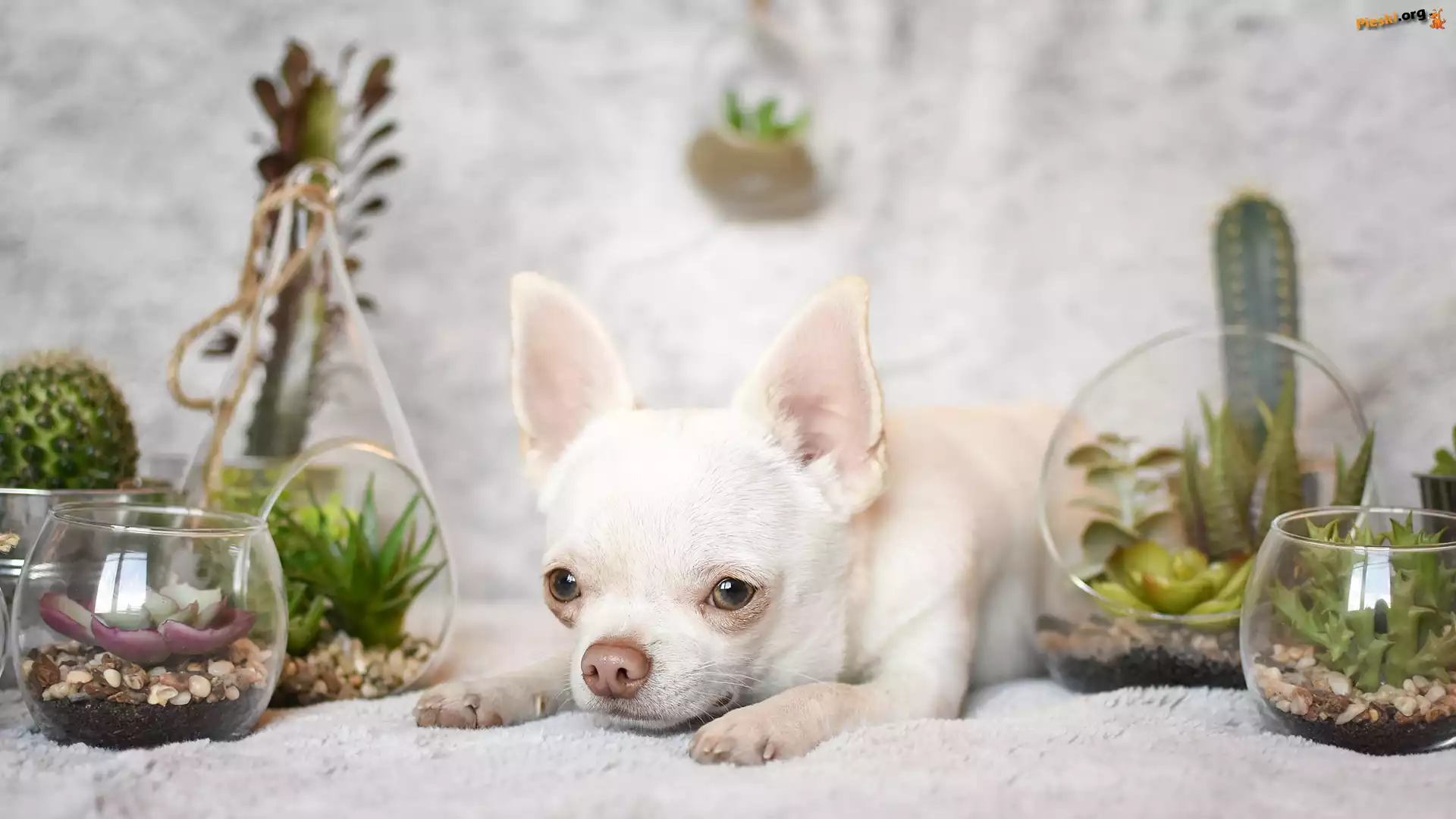 Dekoracje, Pies, Chihuahua krótkowłosa, Rośliny, Pieski