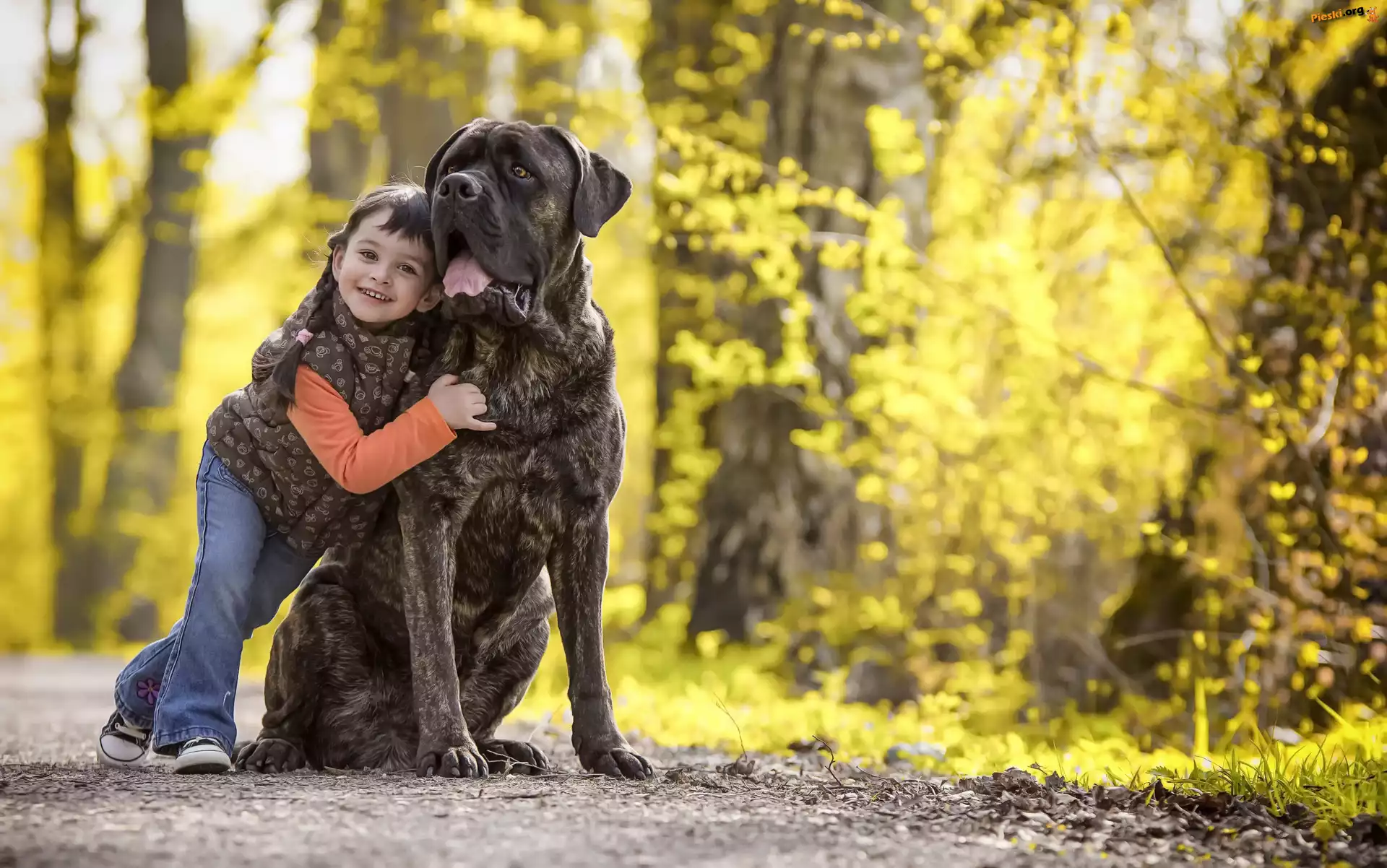 Dziecko, Bullmastiff, Pręgowany, Dziewczynka, Pies, Alejka, Pieski