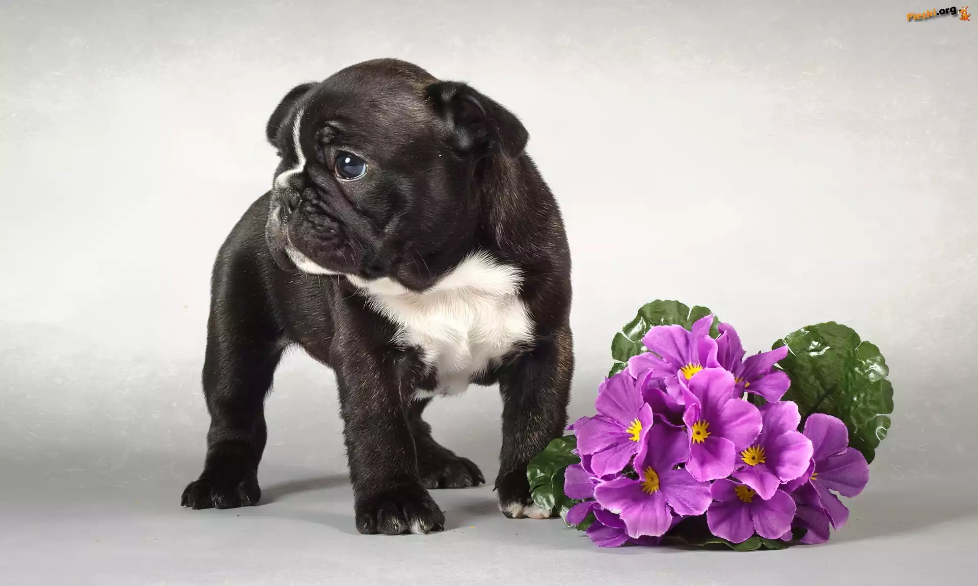 Szczeniak, Prymule, Czarny, Fioletowe, Pies