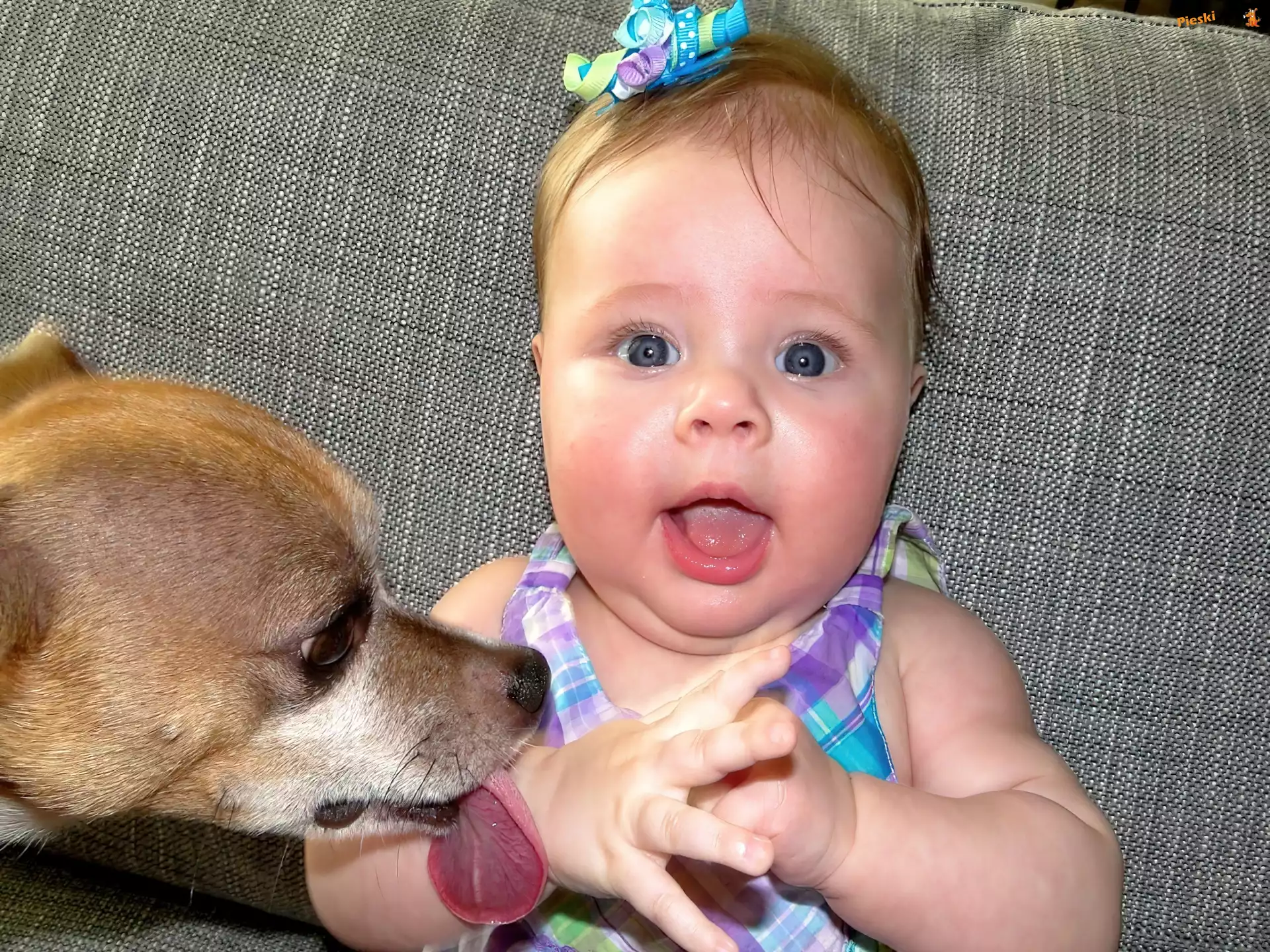 Głowa, Dziewczynka, Malutka, Piesek, Język, Pieski