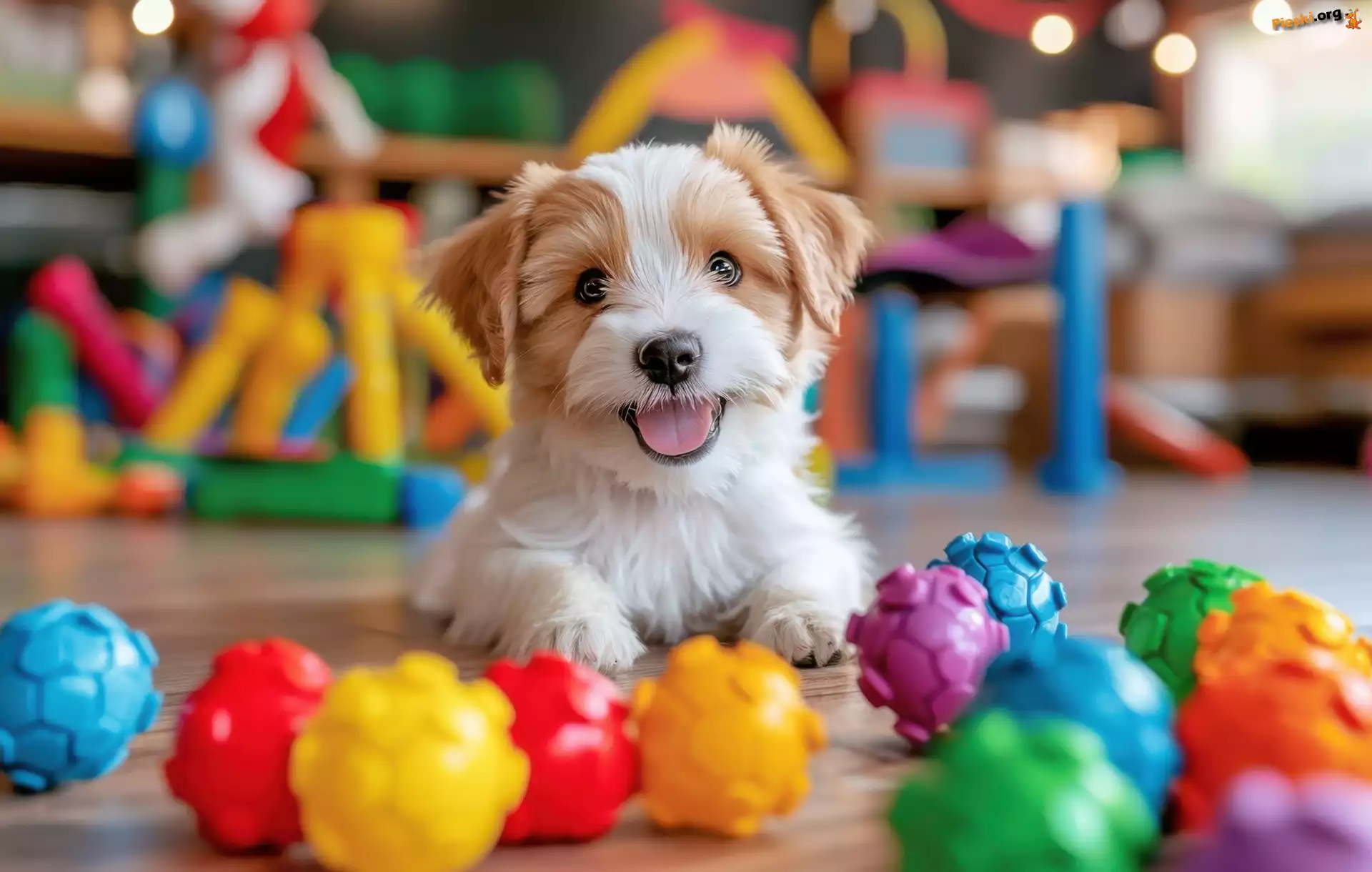 Kolorowe, Grafika, Pies, Zabawki, Szczeniak, Pieski