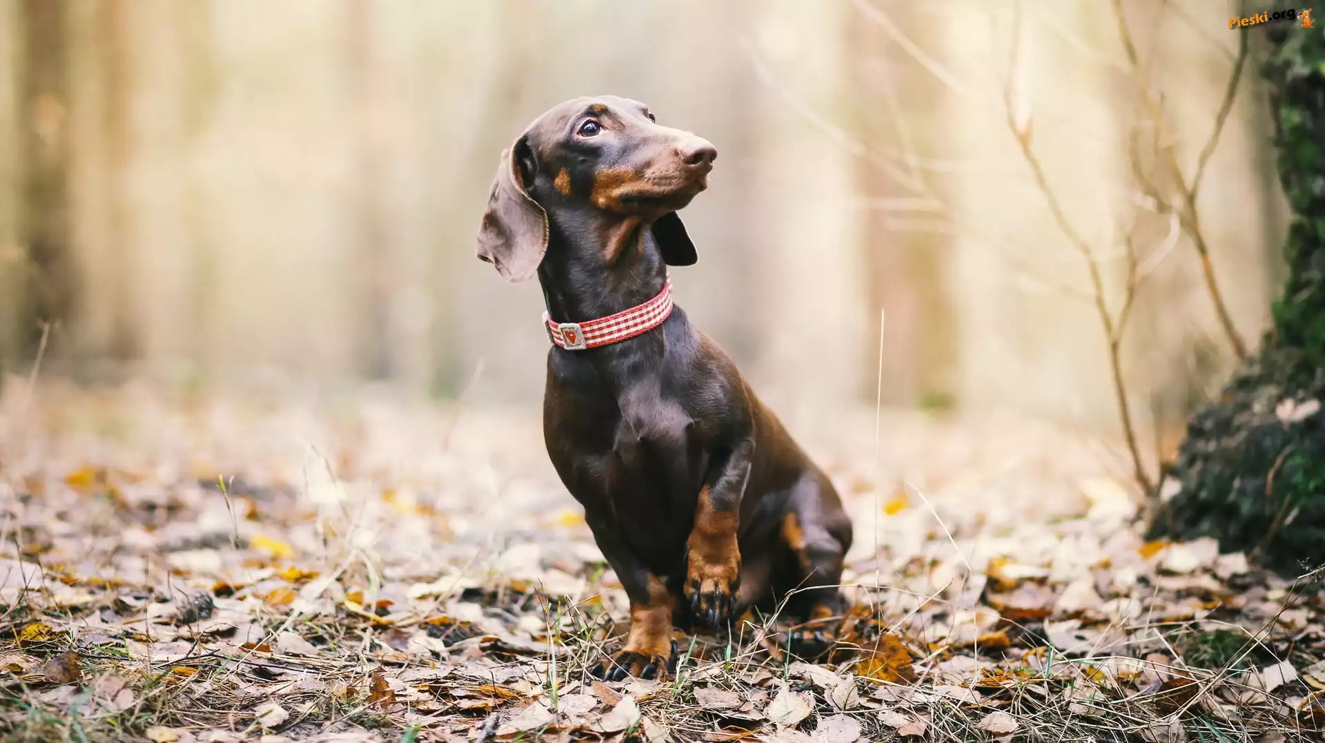 Jamnik krótkowłosy, Park, Liście, Pieski