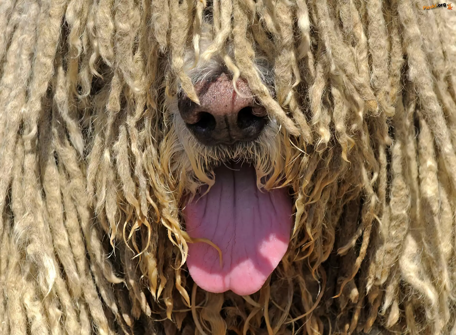 Komondor, drewno nos, język, Komondora biały, Komondor