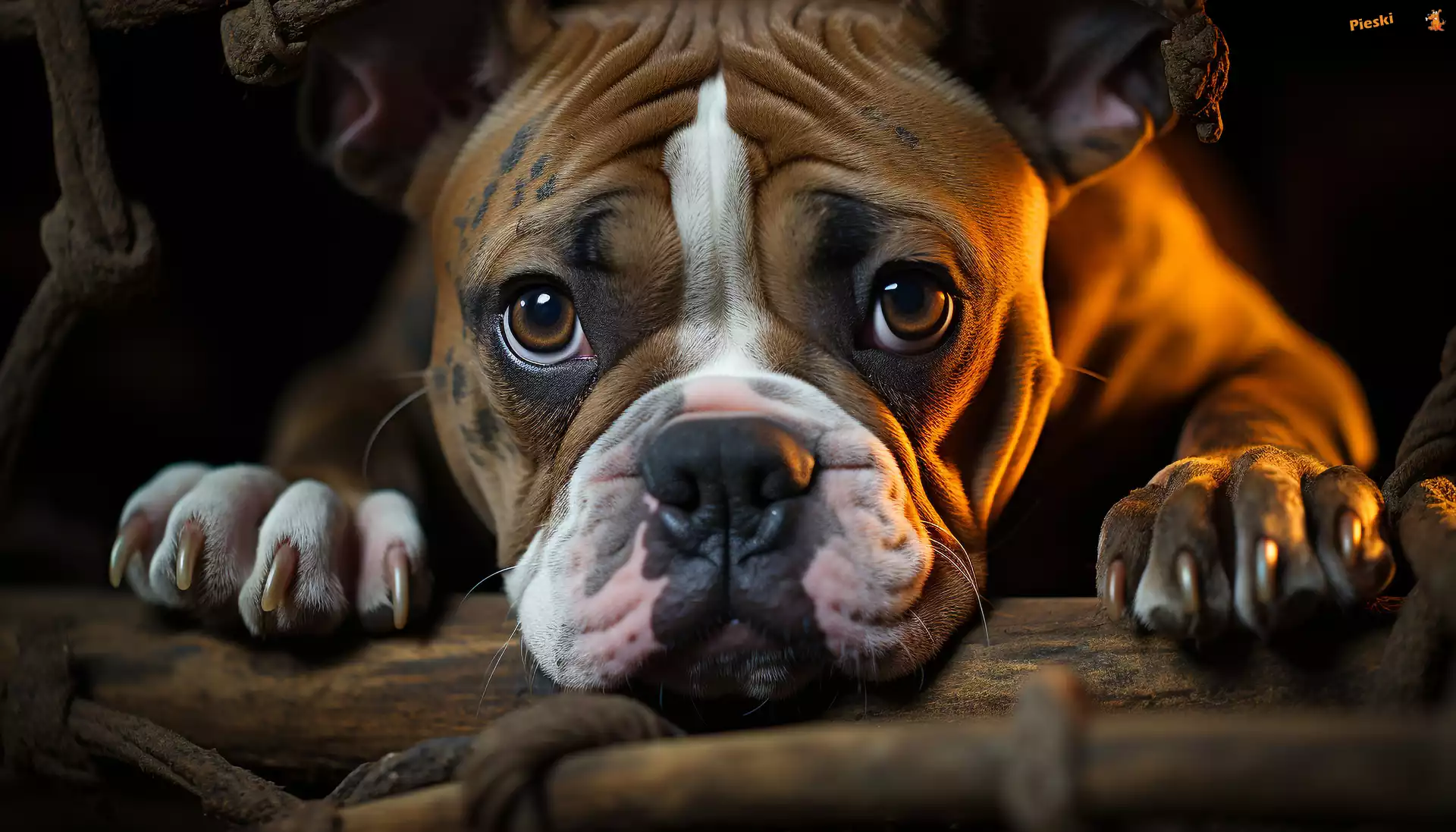 Pyszczek, Kłoda, Pies, Łapy, Buldog