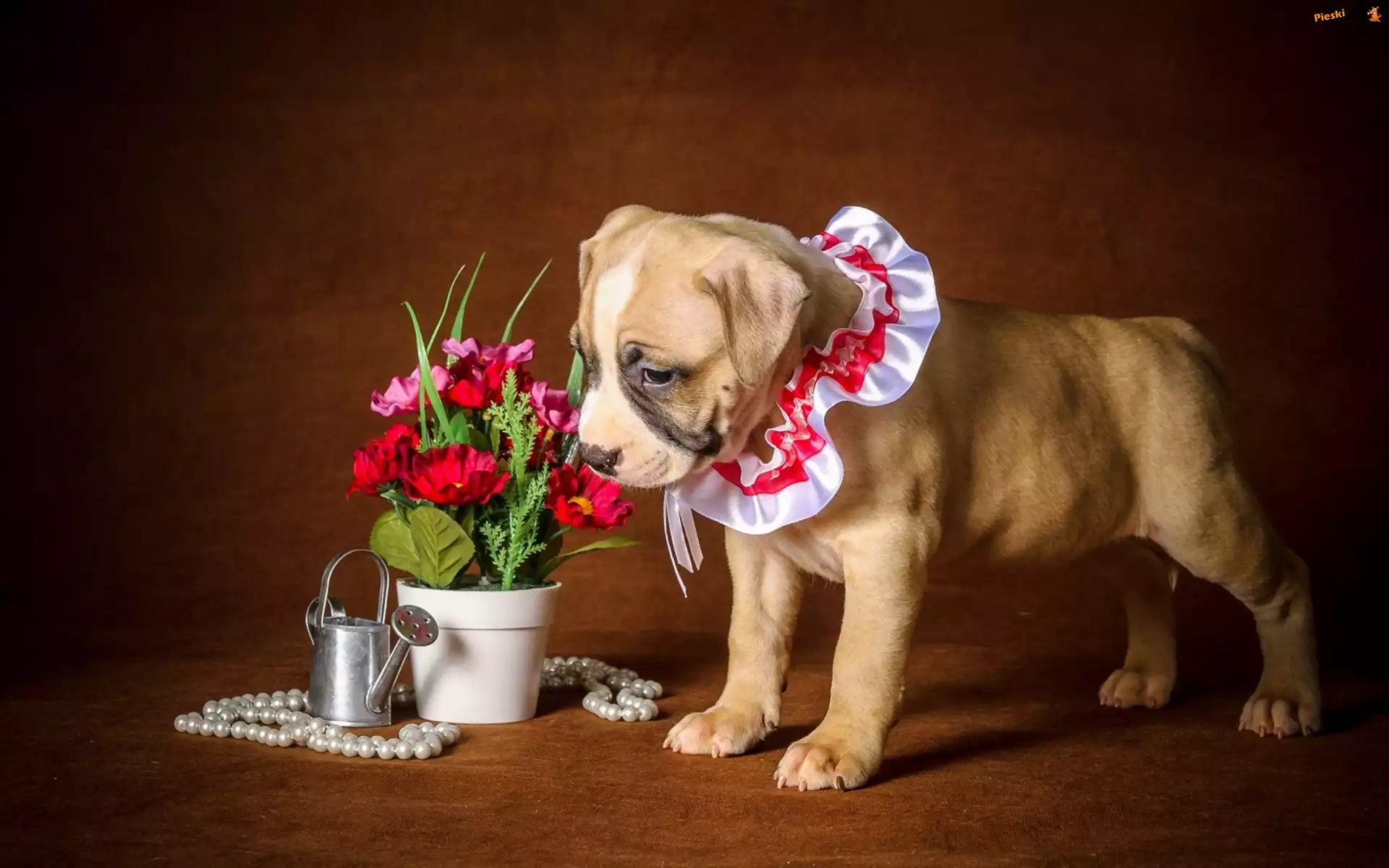 Kwiaty, Pies, Szczeniak, Podlewaczka, Pieski