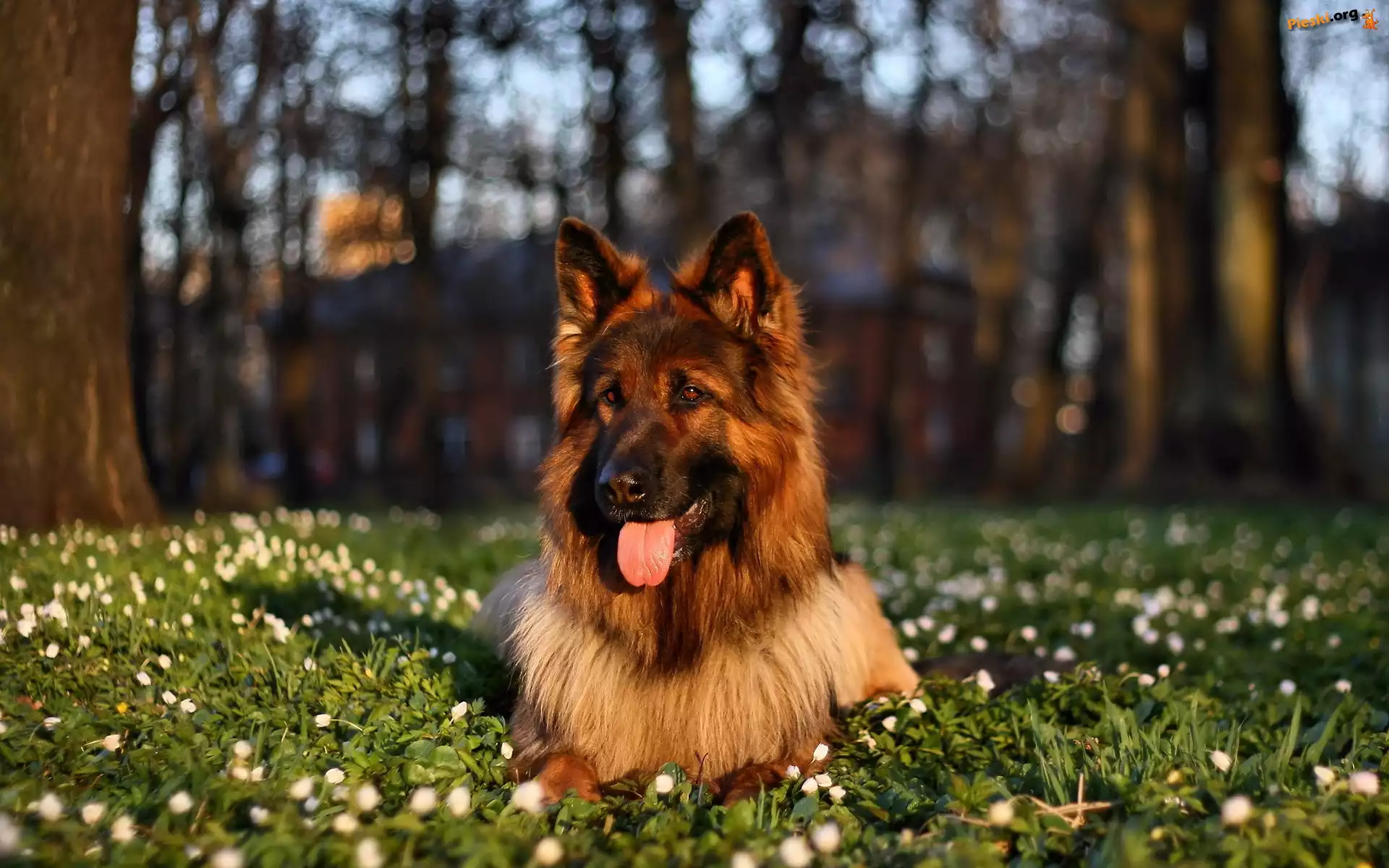 Las, Owczarek, Niemiecki, Trawa, Pieski