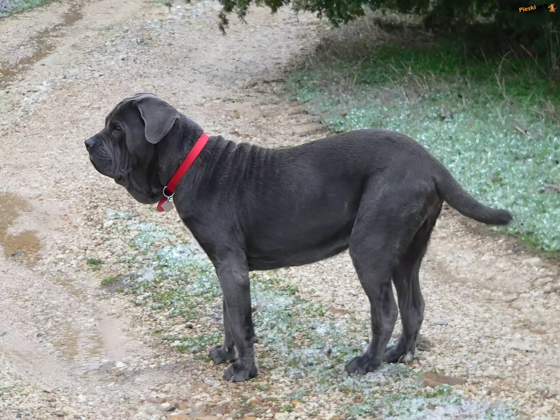 Mastif neapolitański, szare, umaszczenie Mastif, Odpoczynek Morda, Mastifa neapolitańskiego Mastif neapolitański, Pies, Szczeniak, Fotel Pies, Mastif, Neapolitański Mastif neapolitański, czerwona, obroża