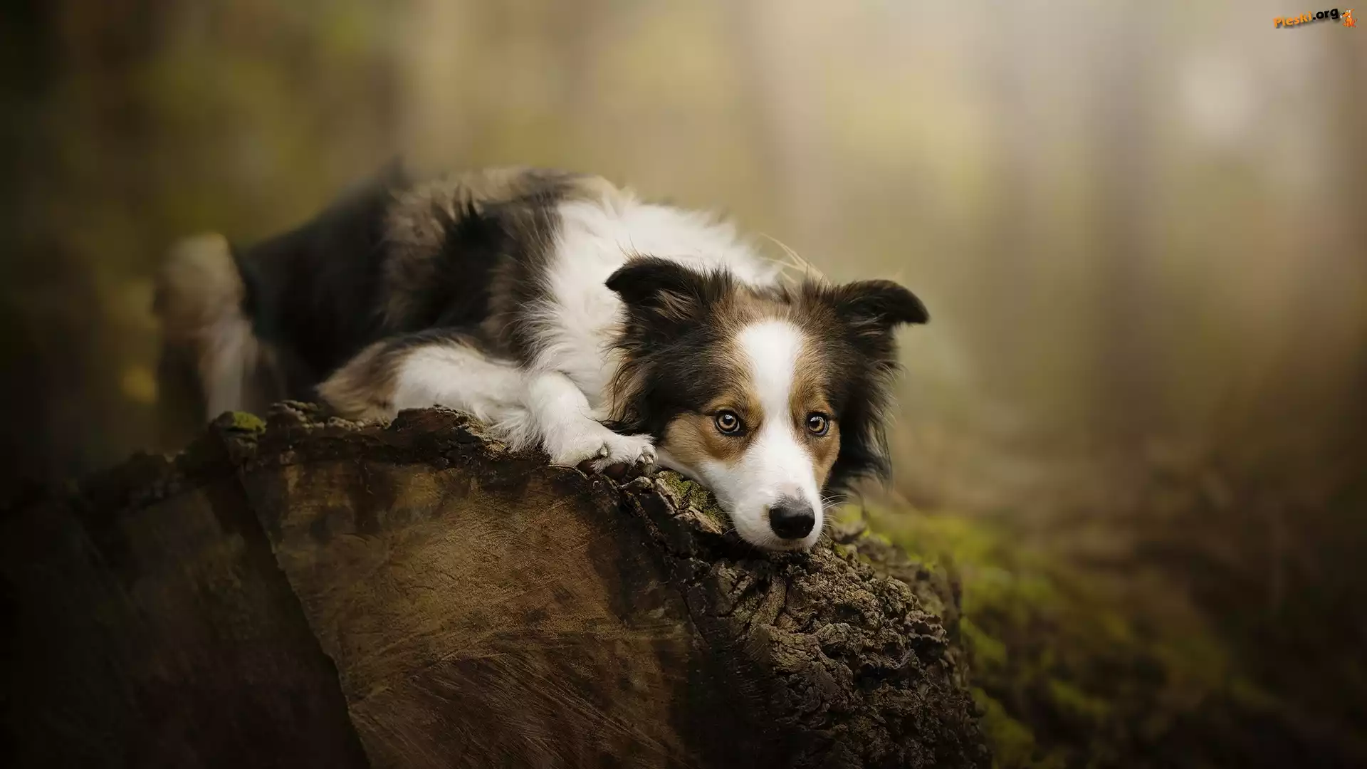Mordka, Pies, Border collie, Kłoda