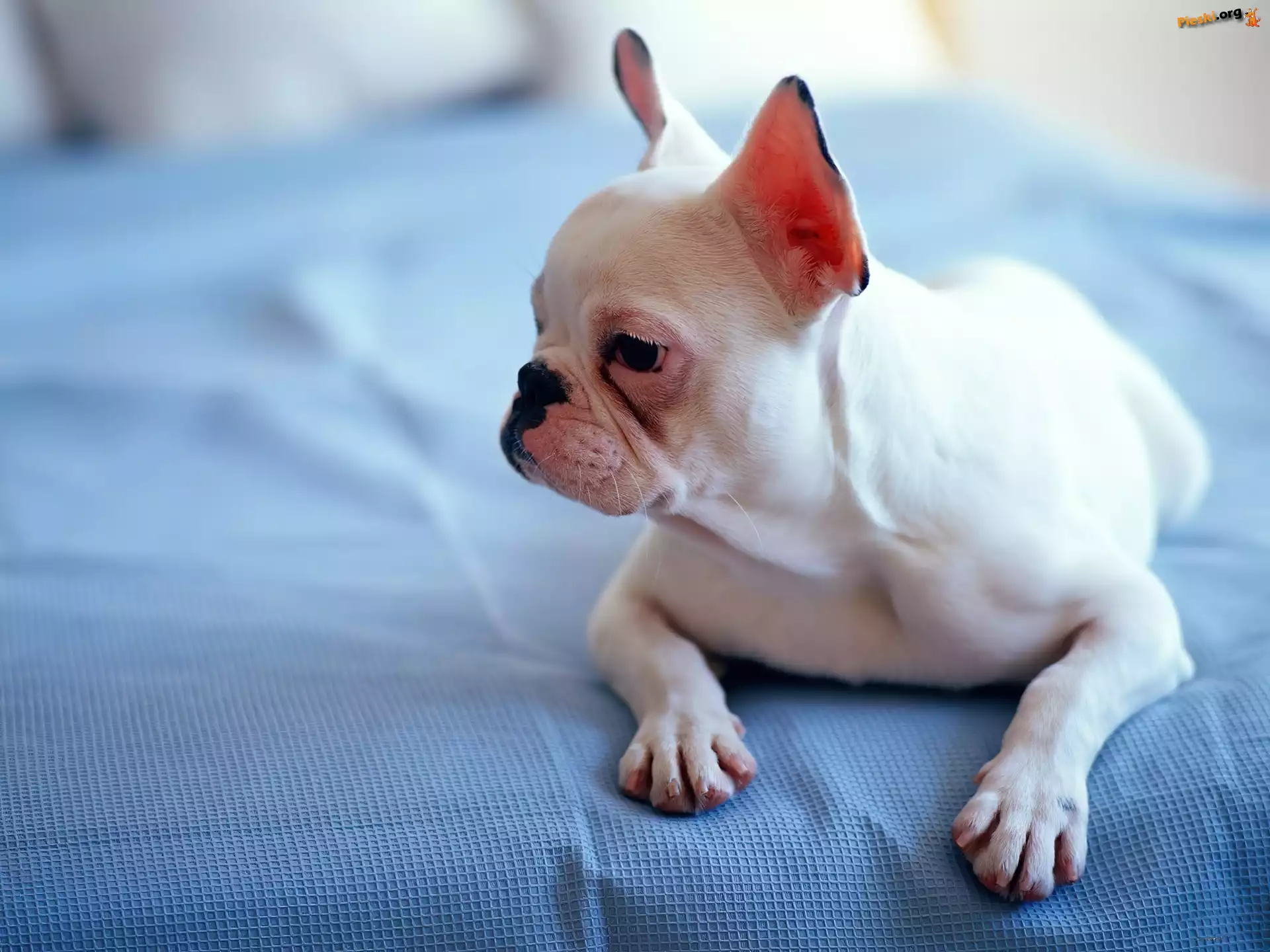 Niebieskie, Biały, Buldog, Nakrycie, Pieski