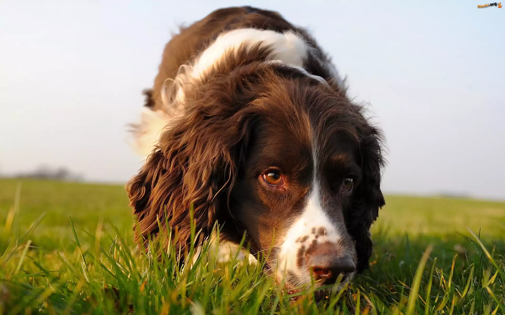 Nos, Łaciaty, Pies, Łąka, Pieski