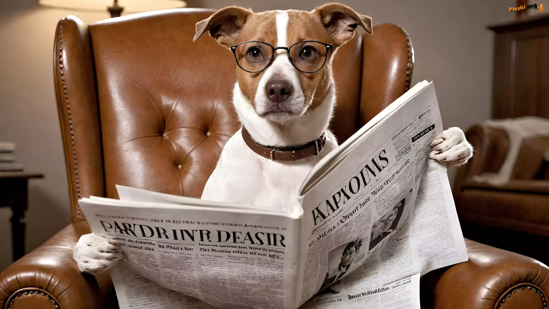 Fotel, Pies, Jack Russell terrier, Grafika, Gazeta, Okulary, Pieski
