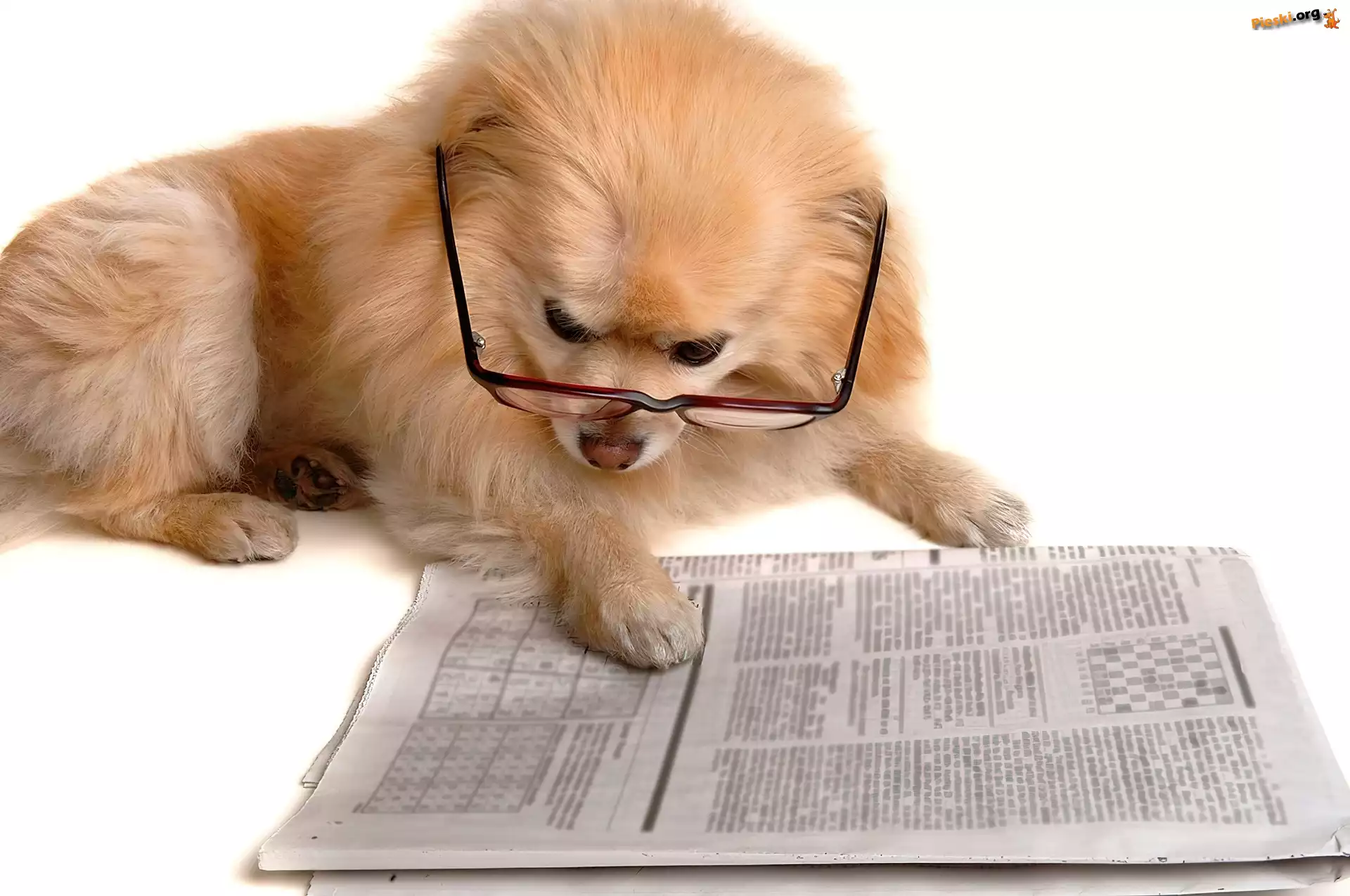 Gazeta, Okulary, Pies, Szpic miniaturowy, Pieski