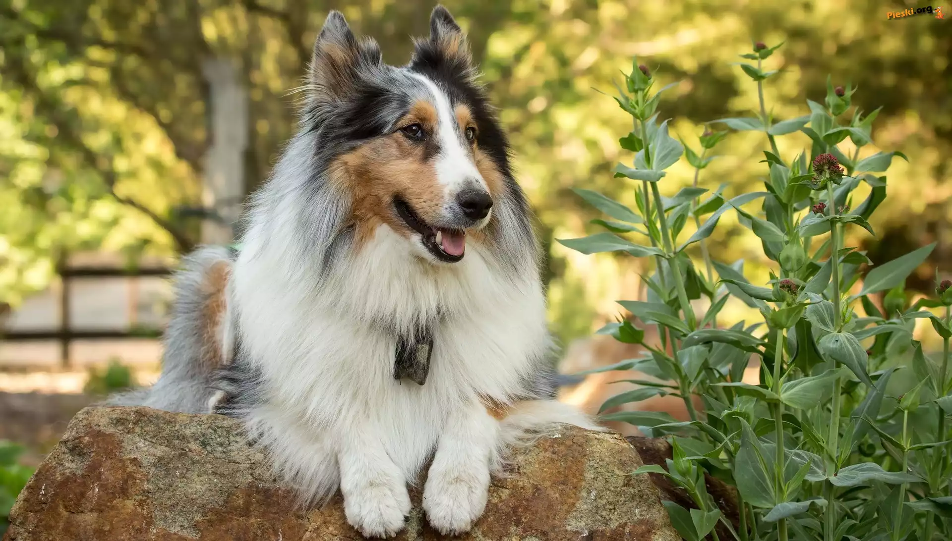 Rośliny, Kamień, Pies, Owczarek szkocki długowłosy, Pieski