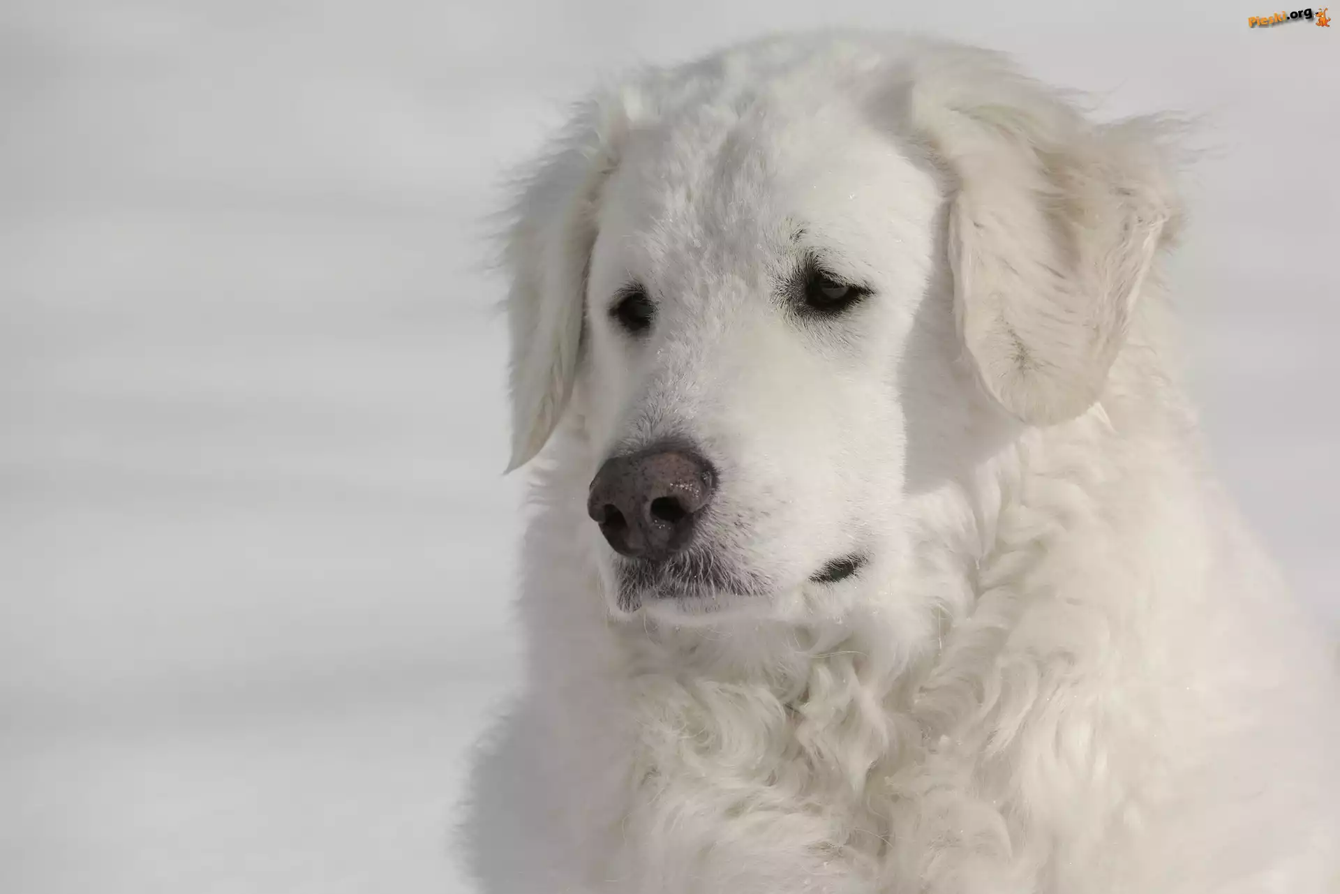 Biały, mały, piesek Trawa, Dwa, Pieski, Niebo skórzana, Głowa, Owczarka podhalańskiego, obroża czerwona, Owczarek podhalański, zęby, obroża Owczarek podhalański, zielona, trawa Biały, Polski owczarek podhalański, język Pies, Owczarek Podhalański Mordka, Polskiego owczarka podhalańskiego
