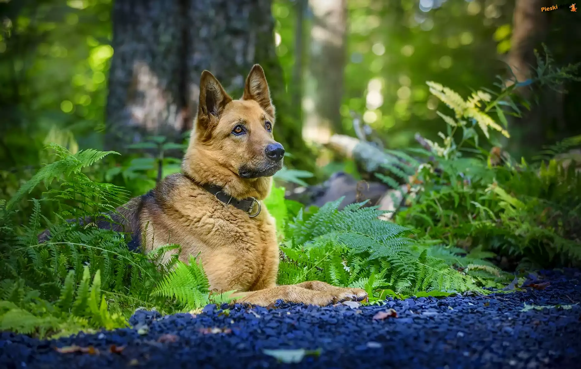 Paprocie, Pies, Owczarek niemiecki, Las