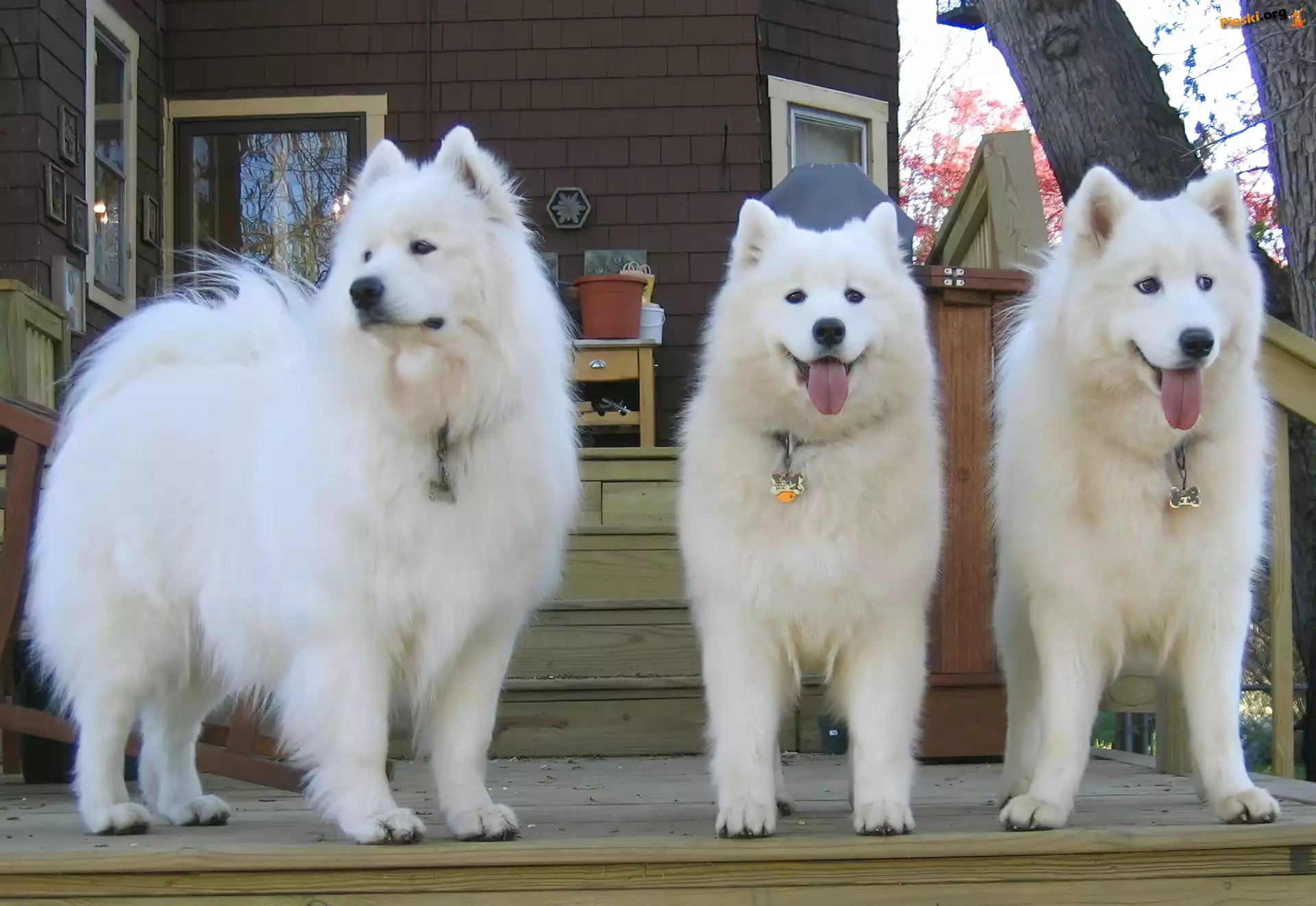 trzy, piękne, Samojedy, Pieski