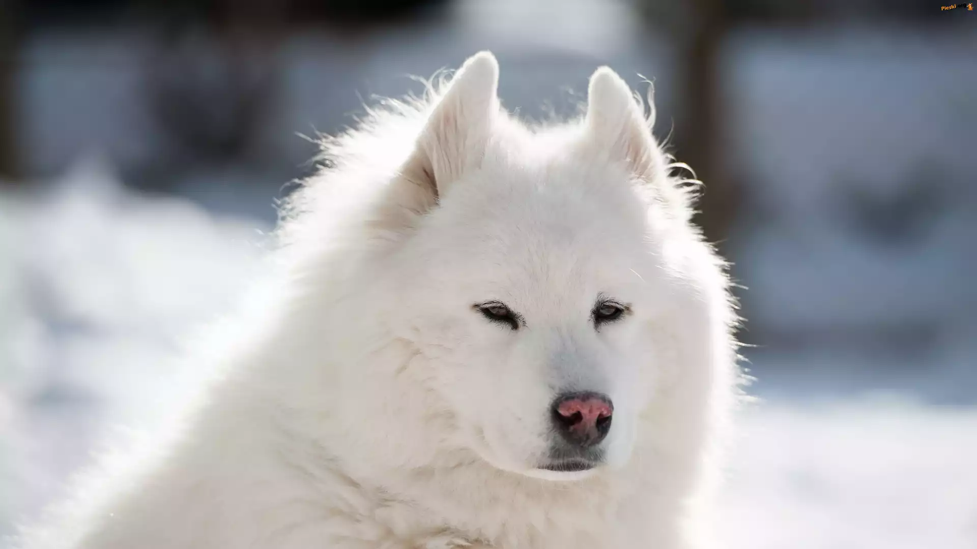Biały, Puszysty, Samojed, Pies