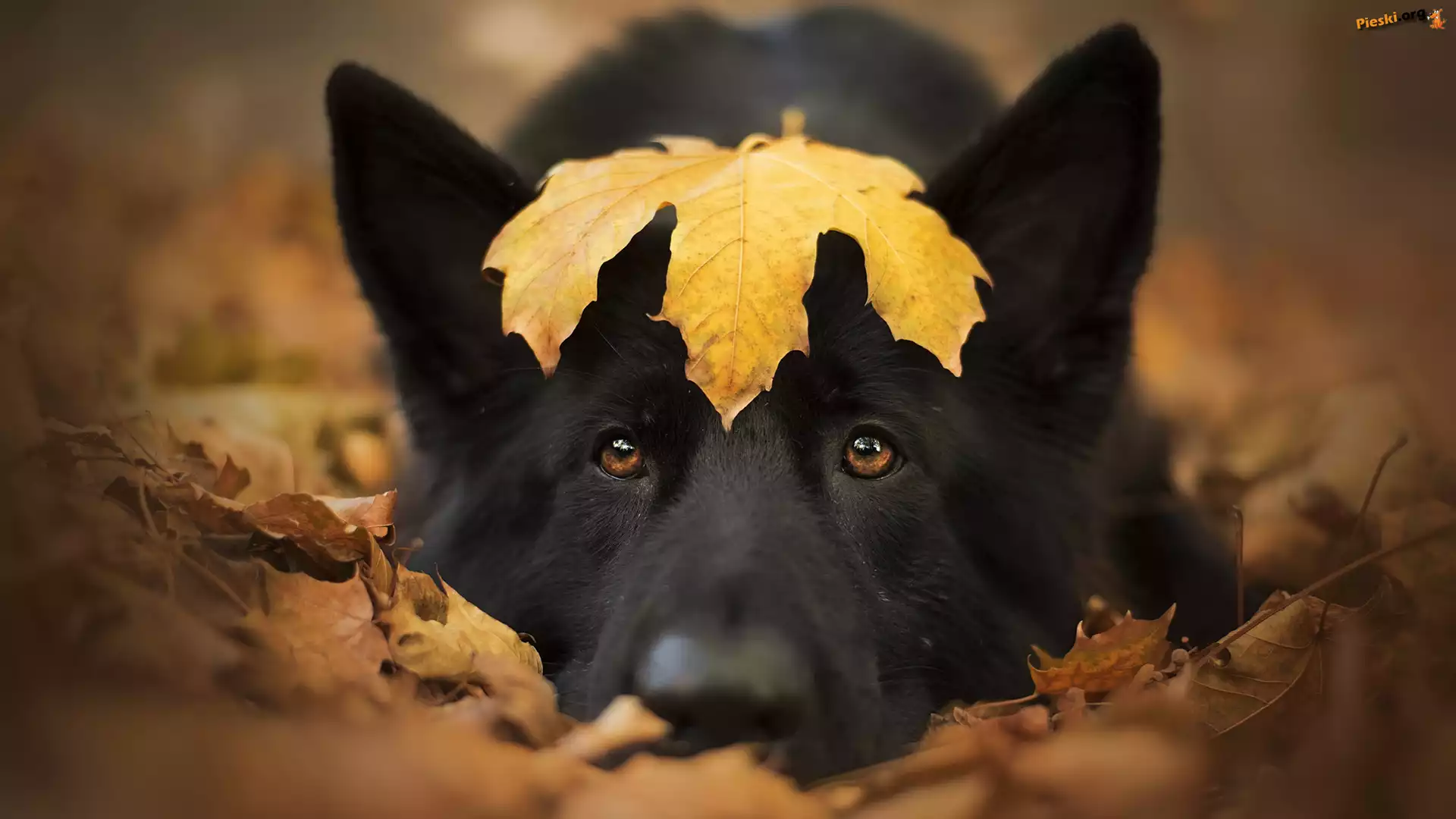 Pies, Czarny owczarek niemiecki, Liść, Pieski