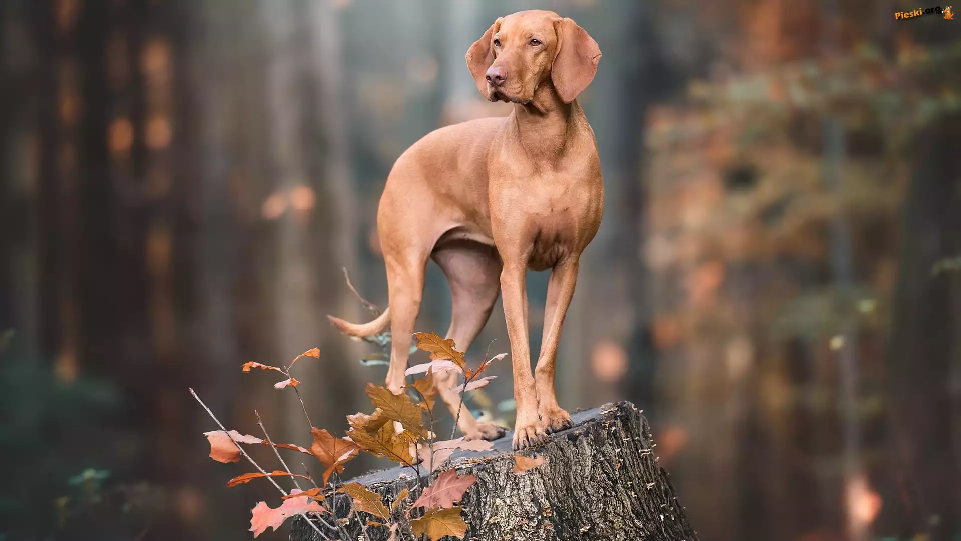 Pieniek, Pies, Brązowy, Wyżeł węgierski krótkowłosy, Liście