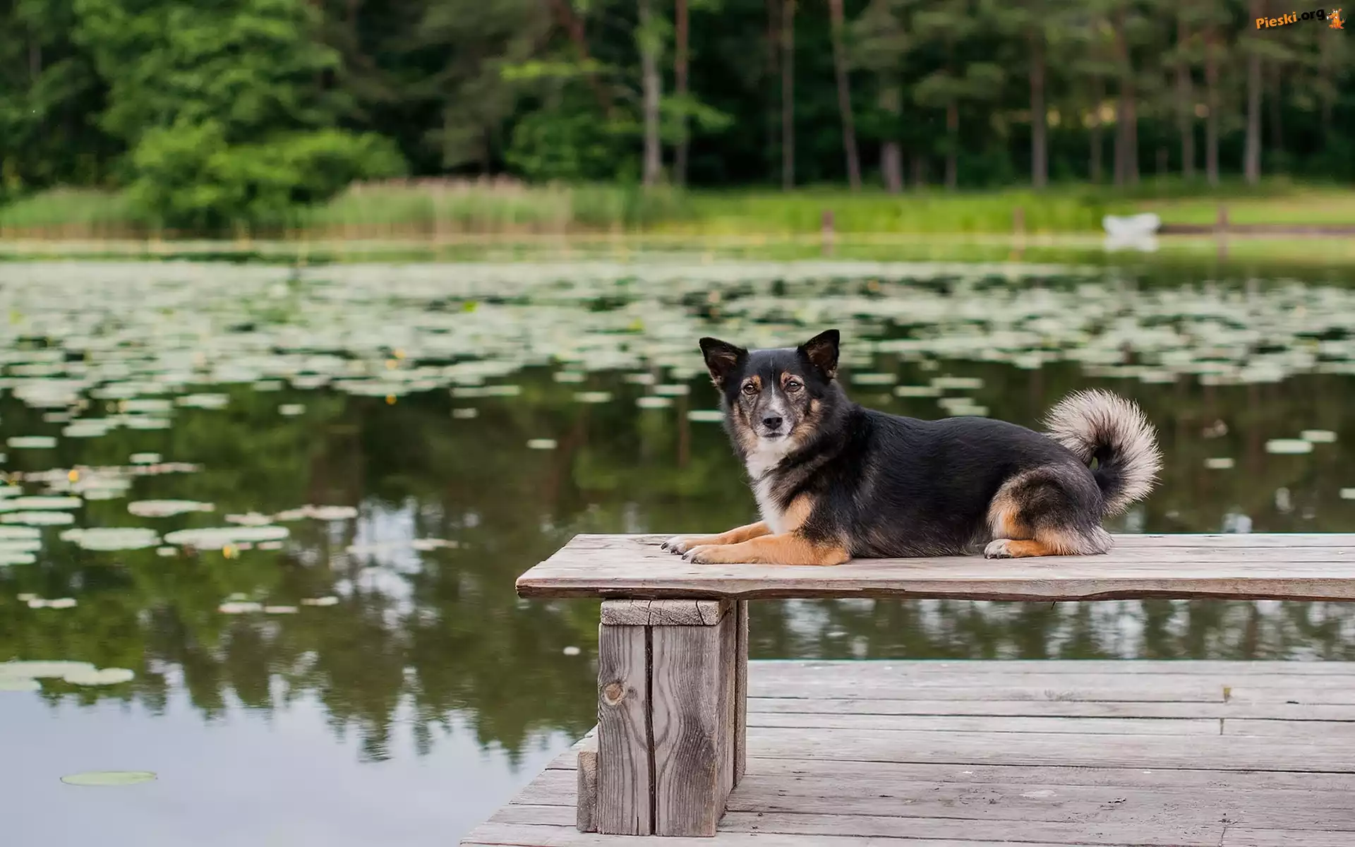 Pomost, Pies, Ławka, Jezioro, Piesek, Staw, Ławeczka