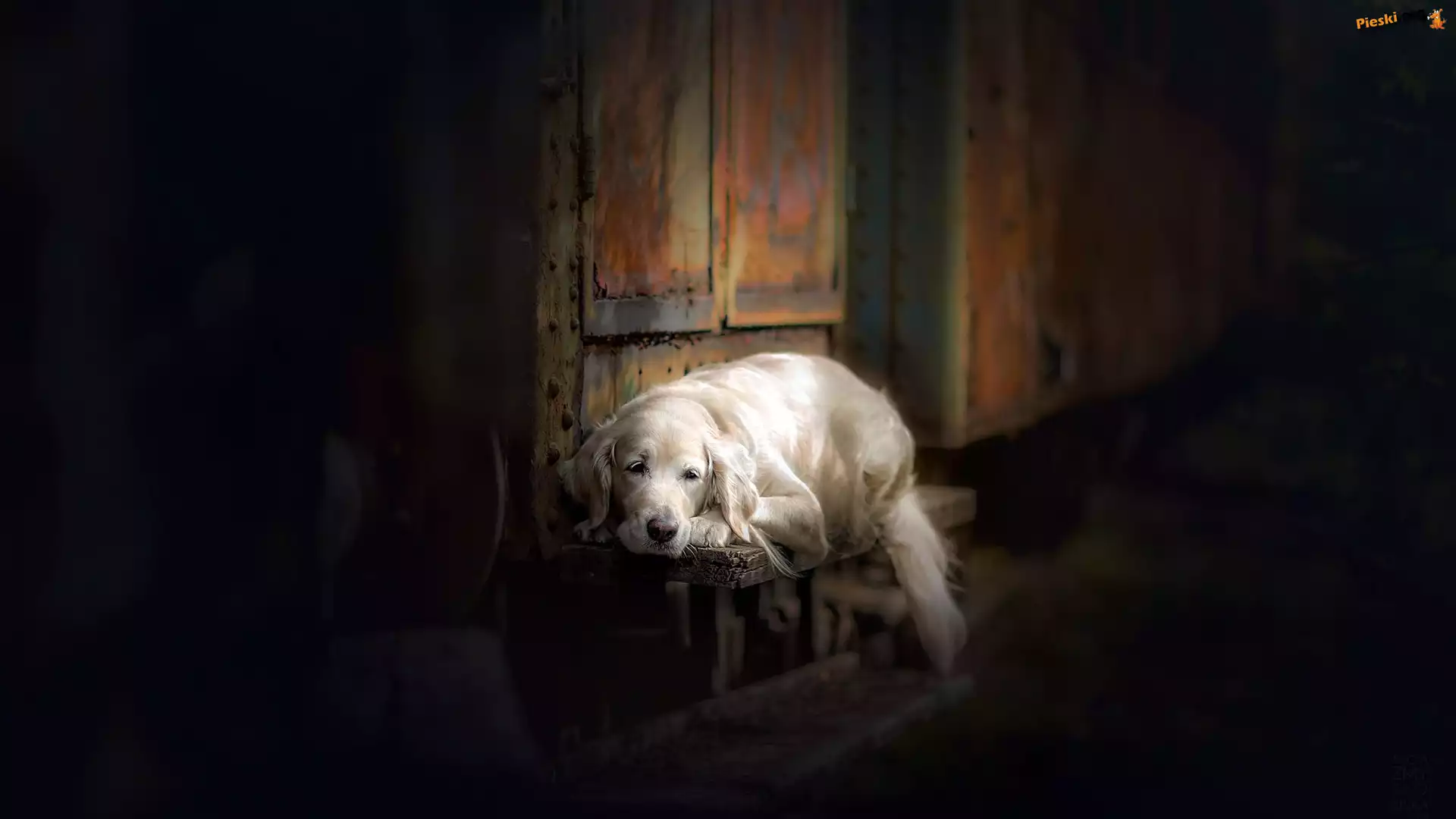 Pies, Golden retriever, Ławka, Pieski