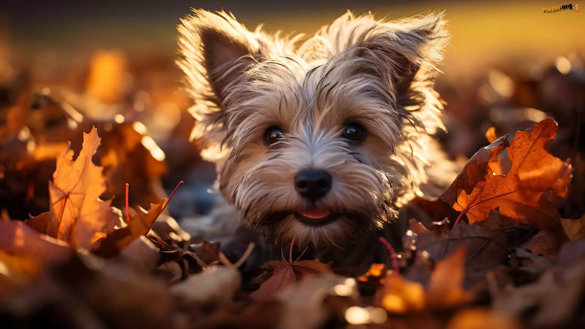 Yorkshire terrier, Liście, Pies, Mordka, Szczeniak