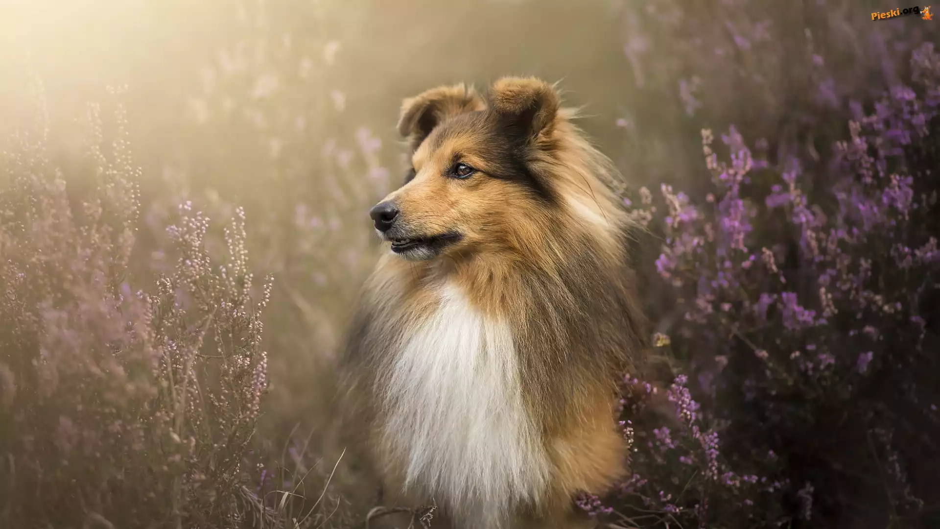 Pies, Owczarek szetlandzki, Wrzos, Pieski
