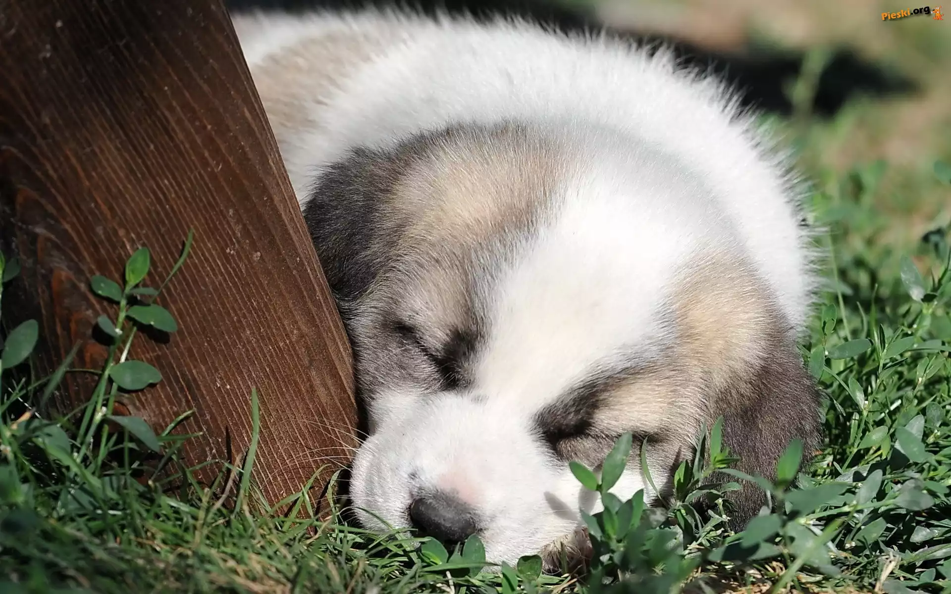 Szczeniak Pnie, Chłopiec, Pies, Owczarek środkowoazjatycki zielona, Mały, Owczarek środkowoazjatycki, trawa Chłopiec, Pies, Przyjaciel Śpiący, Piesek, Trawa Młody, Piesek, Owczarek środkowoazjatycki