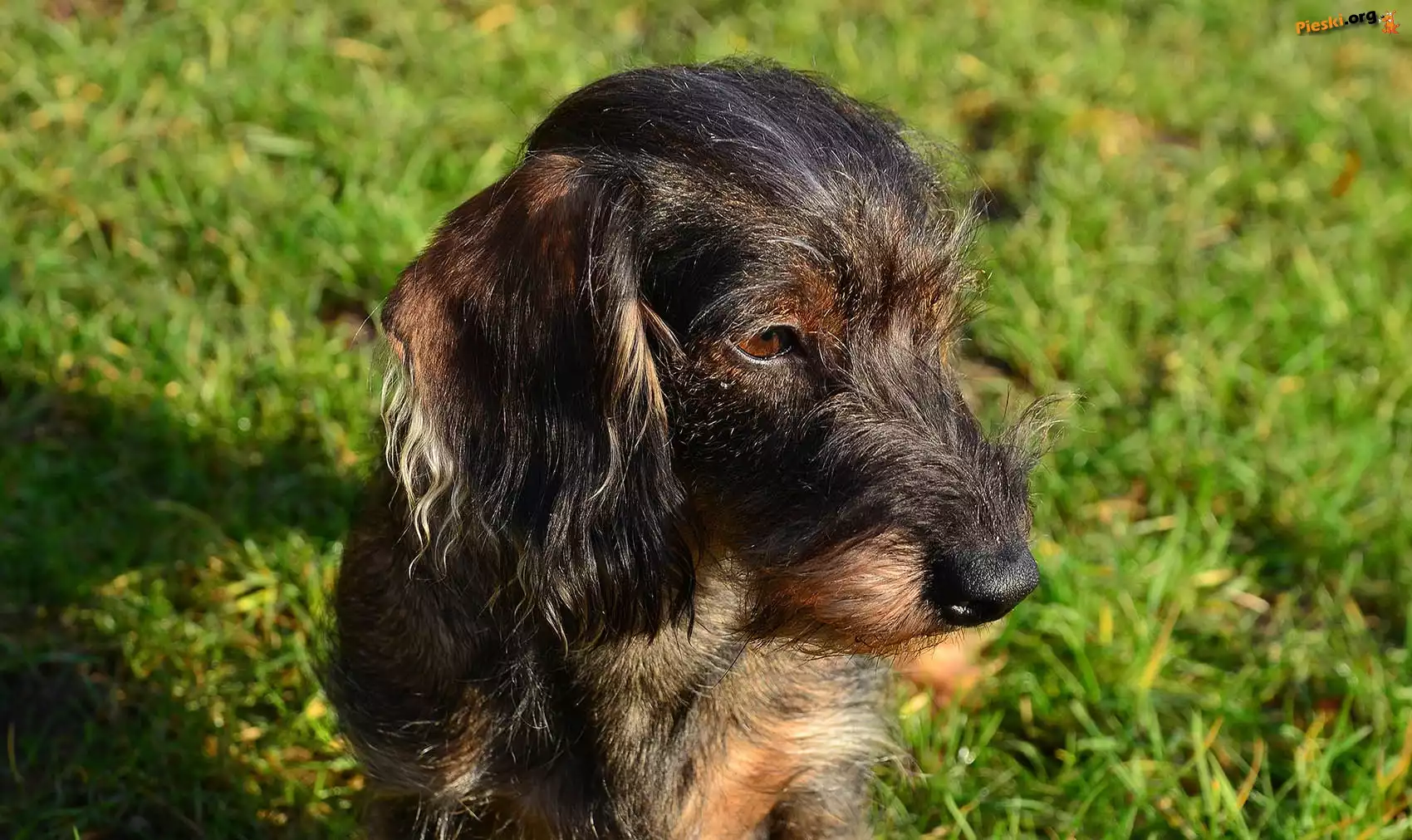 Pies, Piesek, Trawa Jamnik, Szorstkowłosy Spojrzenie, Piesek, Słodki, Szczenię, Jamnik szorstkowłosy