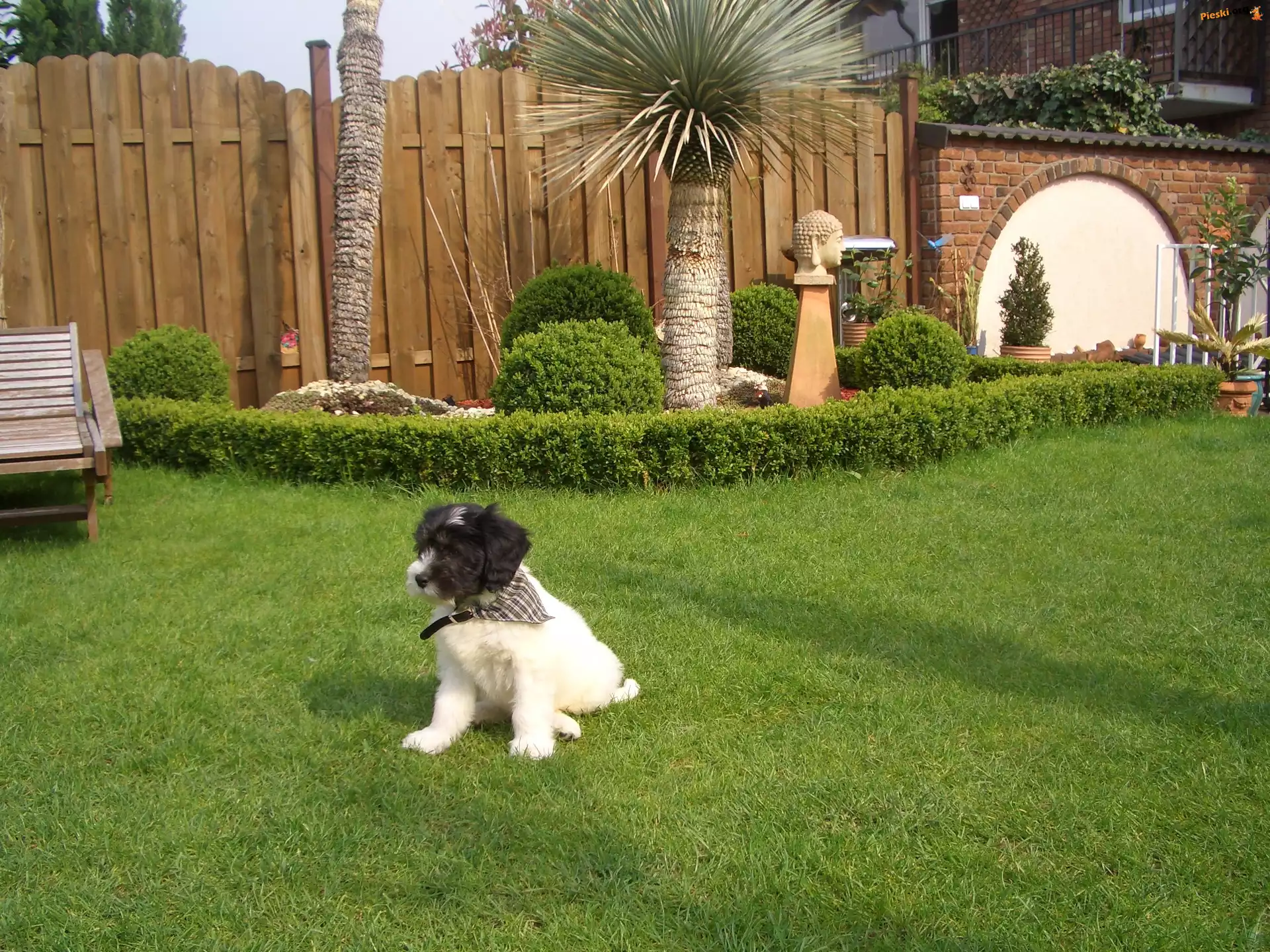Polski owczarek nizinny, ogród Koło, Dwa, Psy, Słoma