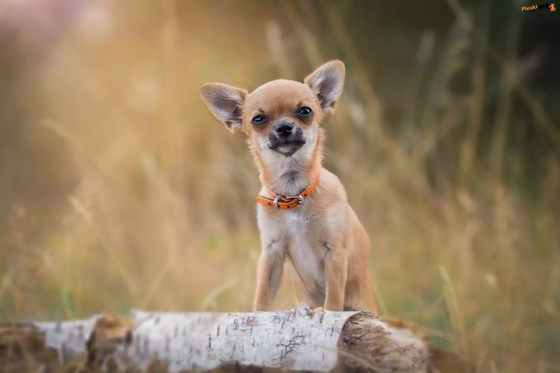 Pomarańczowa, Chihuahua, Piesek, Obroża, Pieski