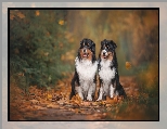 Owczarki australijskie, Suche, Psy, Liście, Dwa