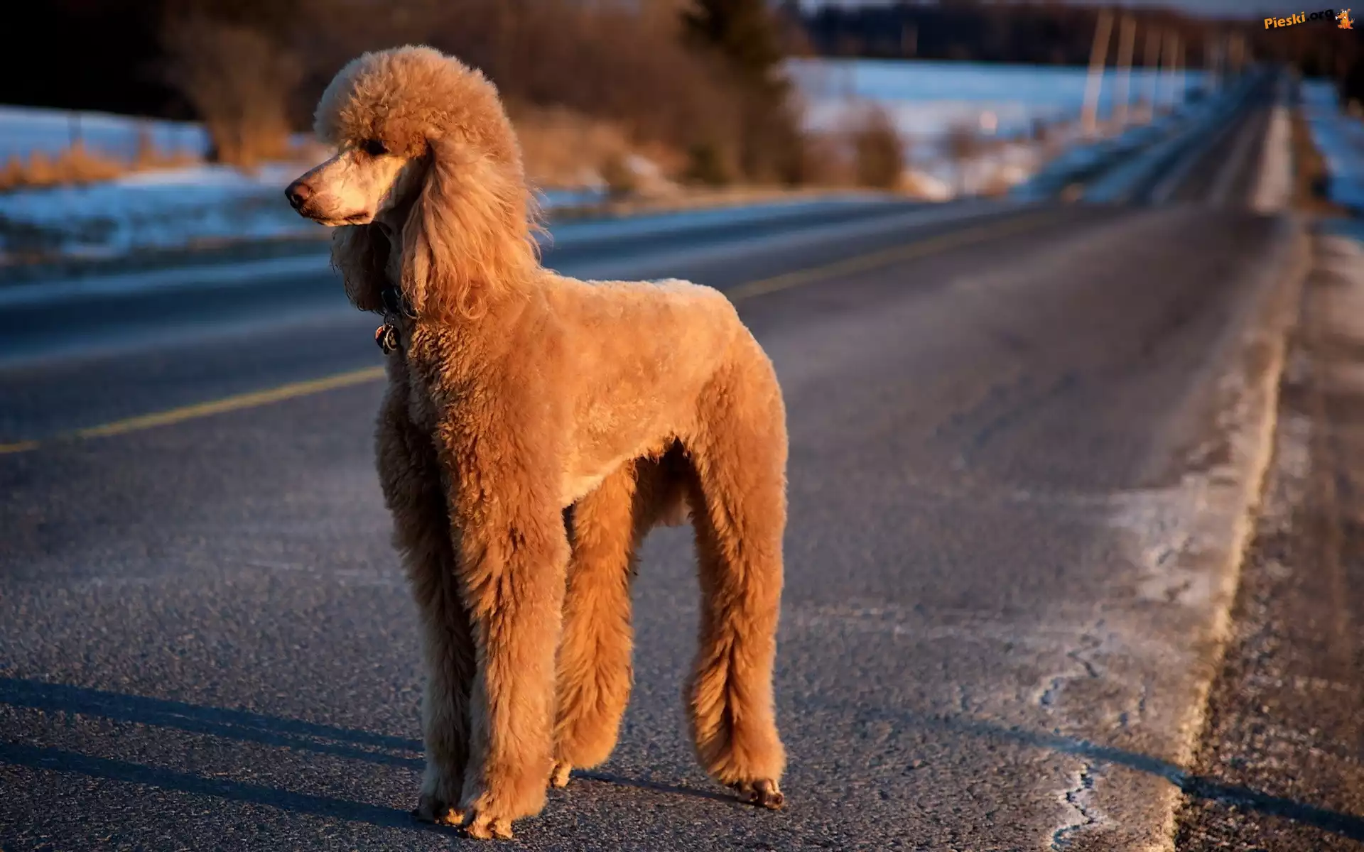 Pudel, Czerwone, Róże biały, Pudel duży Duży, Pudel, Droga