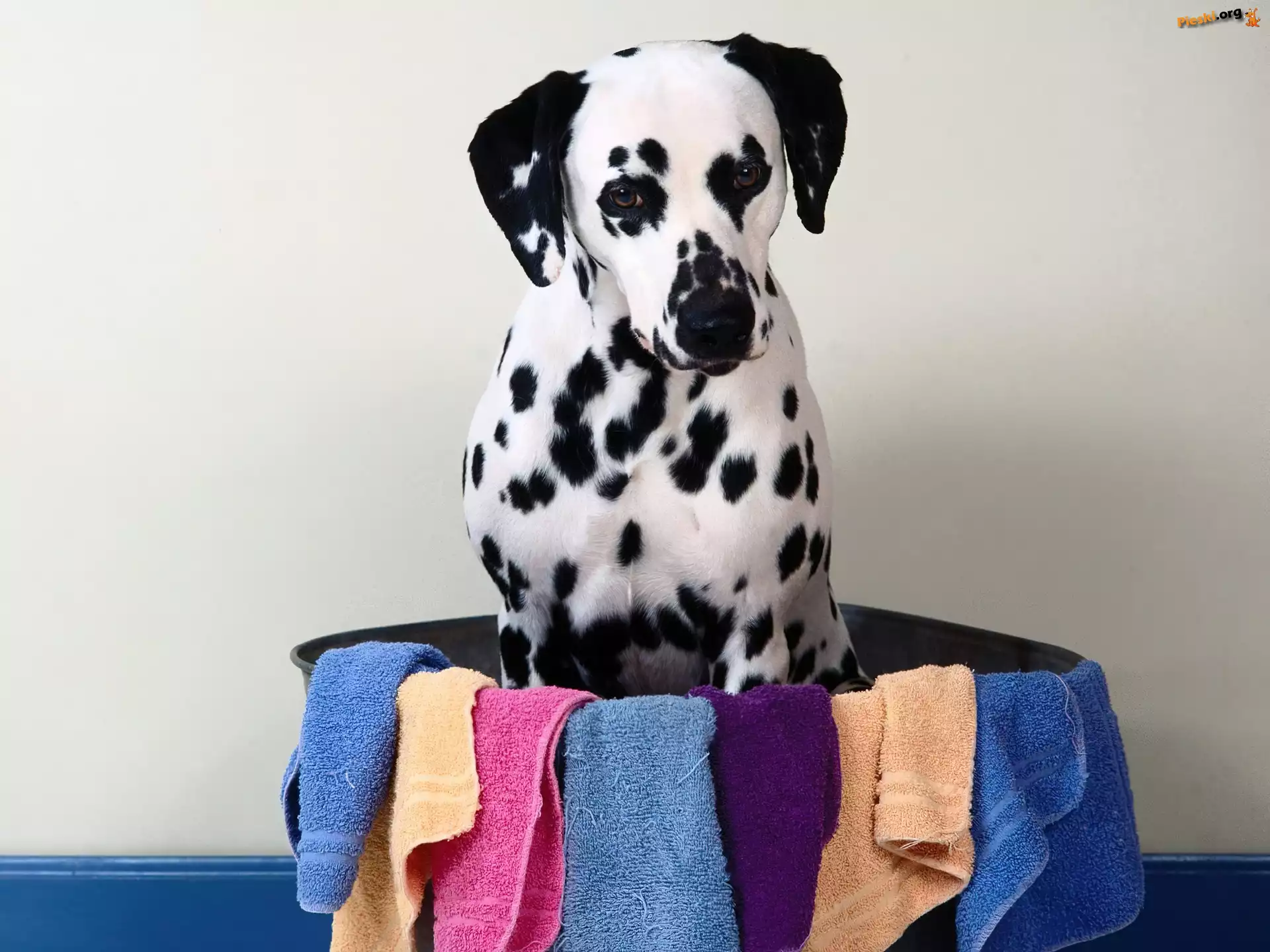 Ręczniki, Pies, Dalmatyńczyk, Miska