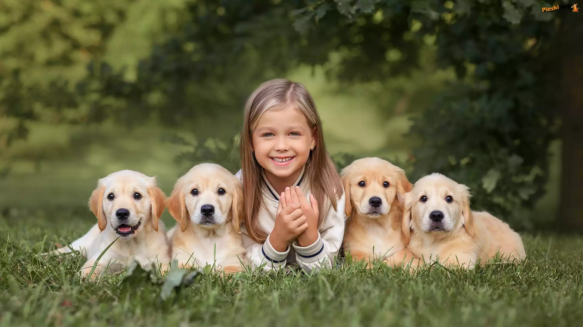 Golden retrievery, Szczeniaki, Dziewczynka, Cztery, Pieski