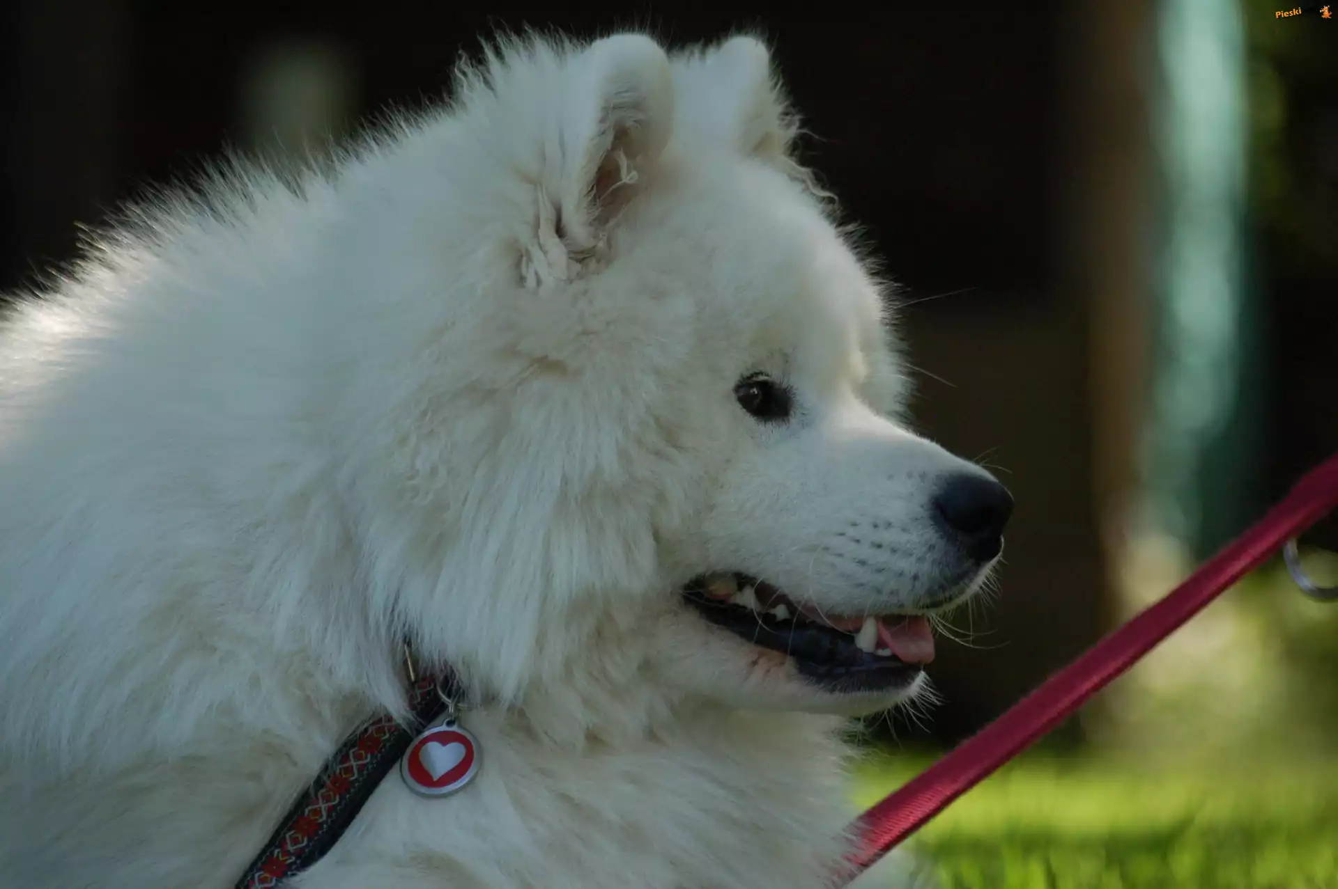 Samojed, serduszko, smycz, Pieski