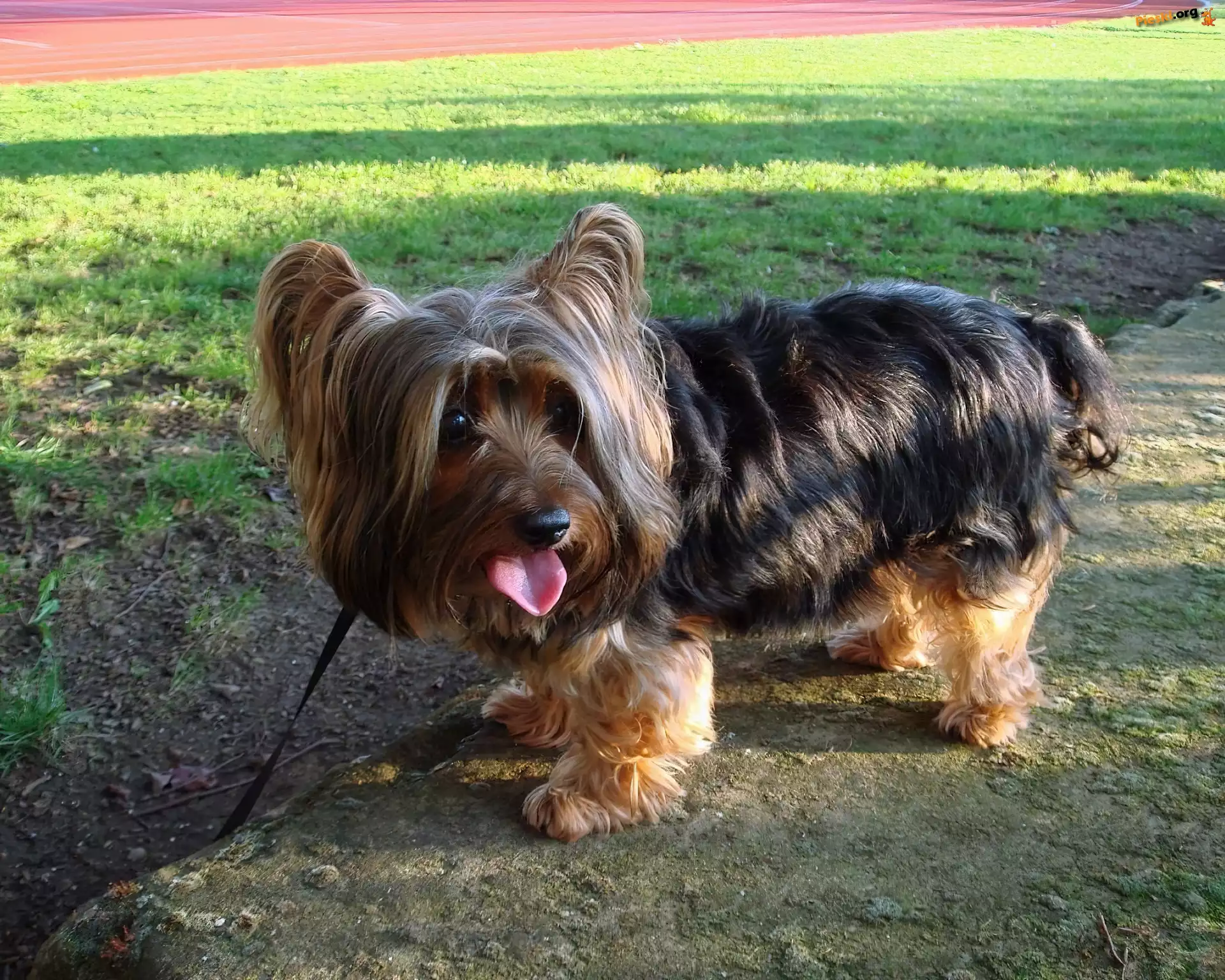 czerwona, Słodki, Australian Silky Terrier, kokardka Australian Silky Terrier Wazon, Australian Silky Terrier, Kokardka, Kwiaty