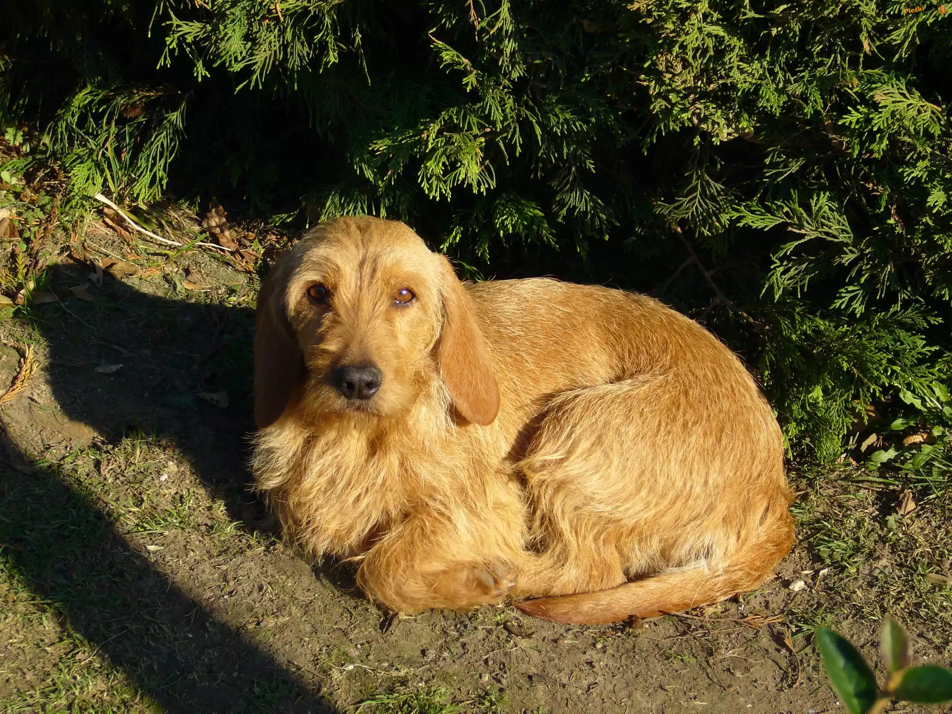 Basset Fauve de Bretagne, dwa, słodkie, schody skulony, Basset Fauve de Bretagne Basset Fauve de Bretagne