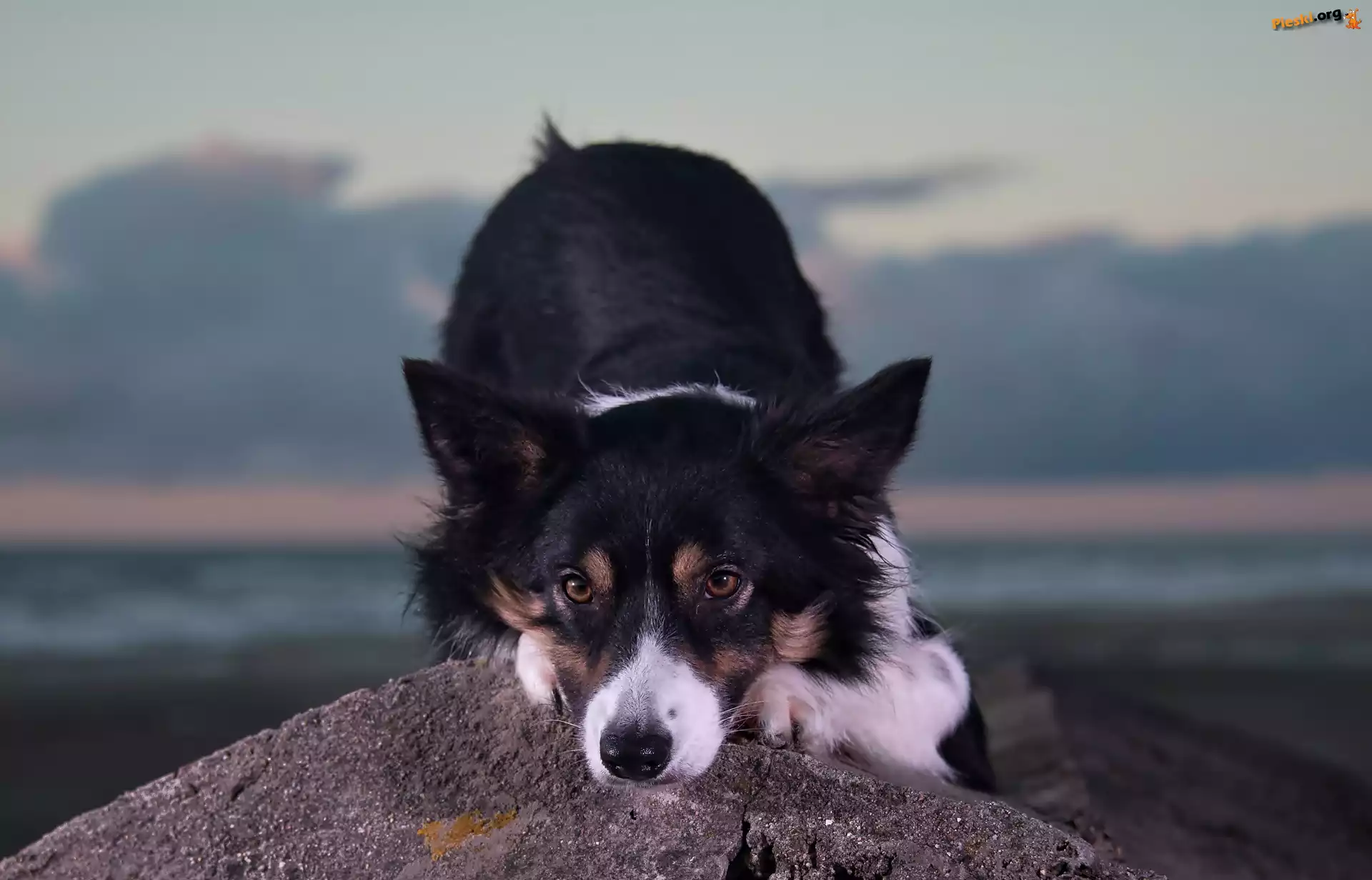 Spojrzenie, Pies, Morda, Kamień, Pieski