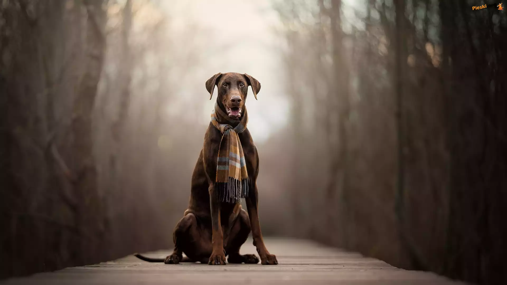 Czarne, Doberman, Pies, Światła, Tło Doberman, Obroża Doberman, Mordka, Pies, Brązowy, Wrzosy Mały, Duży, Doberman, Pinczer Doberman, Dziecko, Chłopczyk, Całus Doberman Doberman Szalik, Pies, Doberman, Kładka