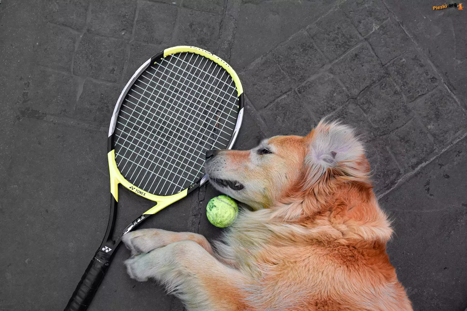 Pies, Piłka, Rakieta tenisowa, Pieski
